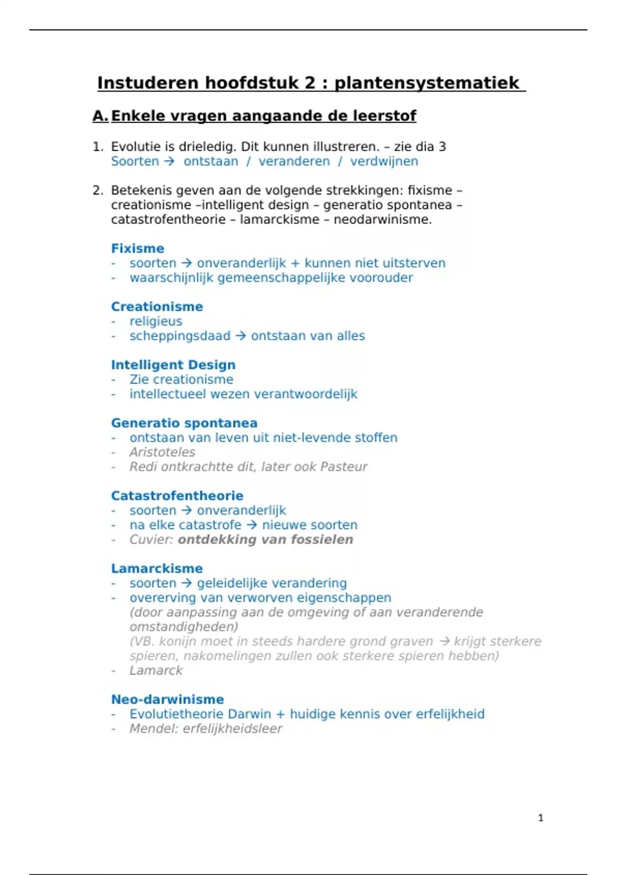 , 3. Kunnen weergeven waarom het creationisme, het fixisme en de