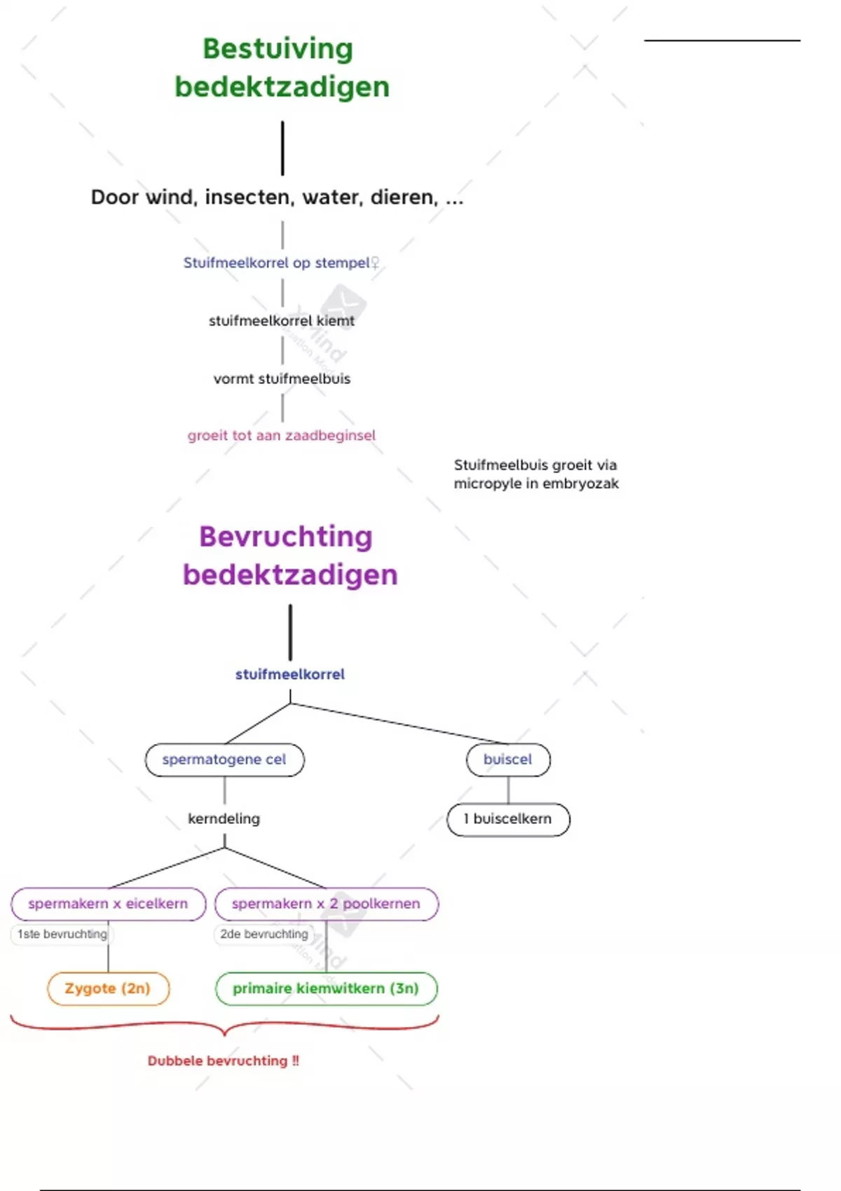 Plantkunde L5 - Schema - Bestuiving & bevruchting bedektzadigen Als je het afprint, zie je het watermerk bijna niet meer. Had geen zin om voor dat programma te betalen :)