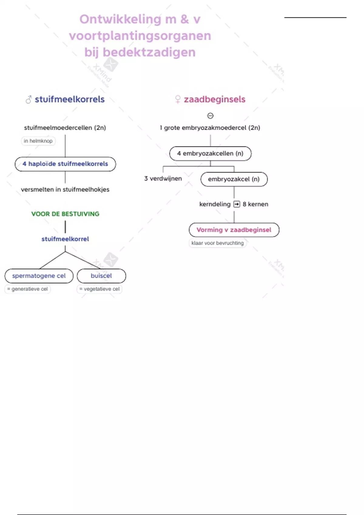 Plantkunde L5 - Schema - Ontwikkeling ♂ & ♀ voortplantingsorganen bij bedektzadigen Als je het afprint, zie je het watermerk bijna niet meer. Had geen zin om voor dat programma te betalen :)