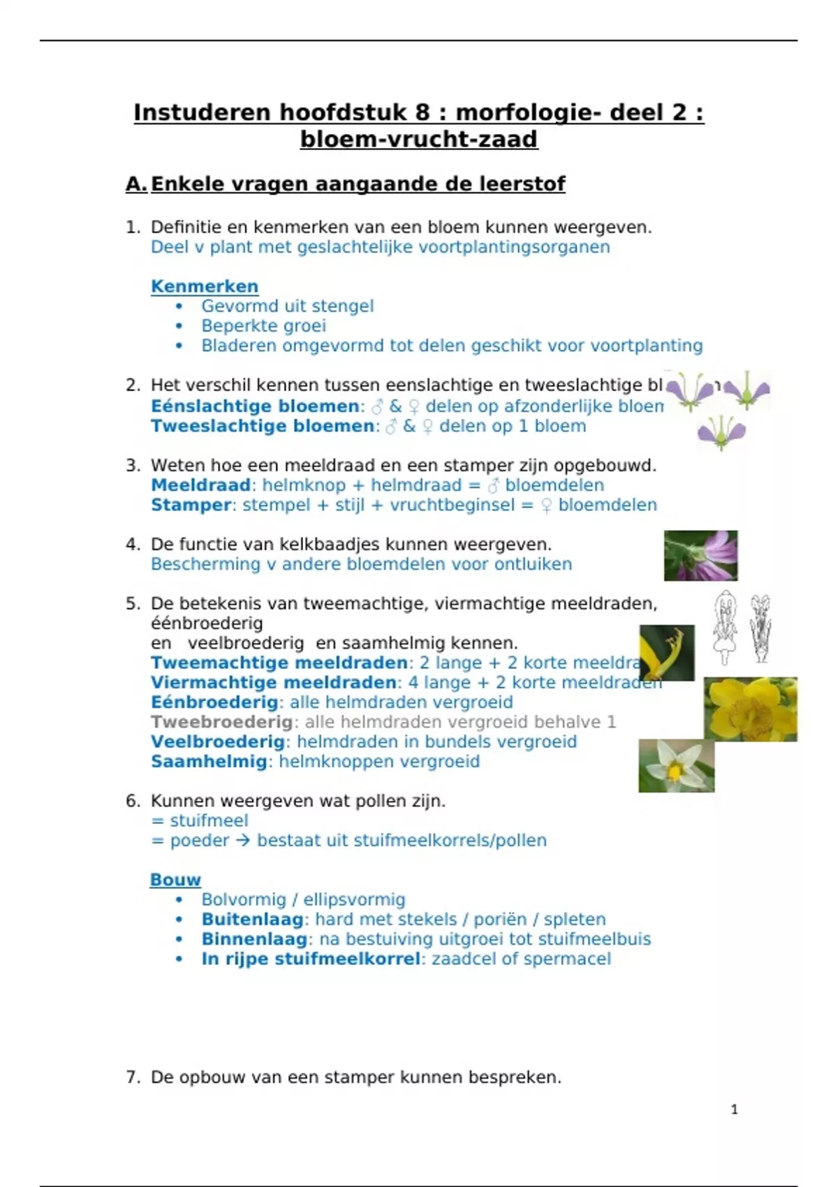 1. Definitie en kenmerken van een bloem kunnen weergeven.