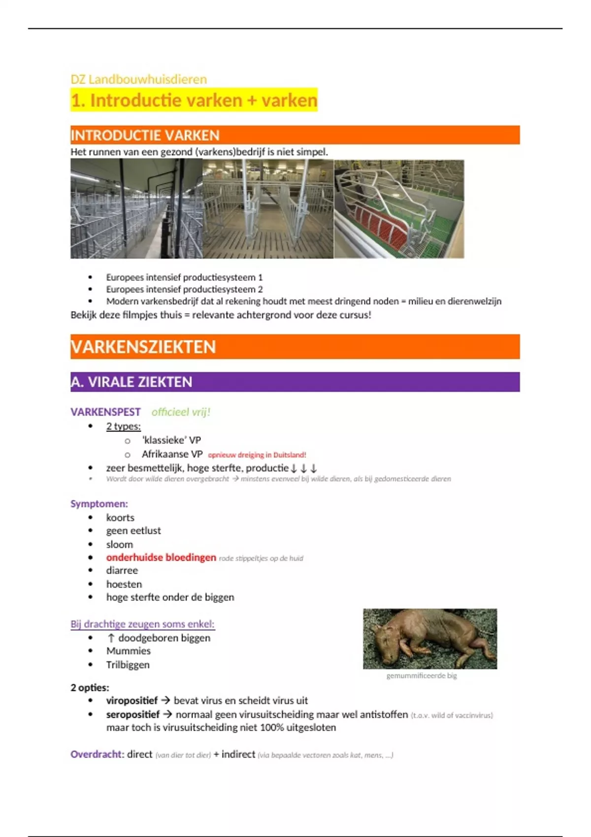 Dierziekten landbouwdieren - Samenvatting L2 - varkens