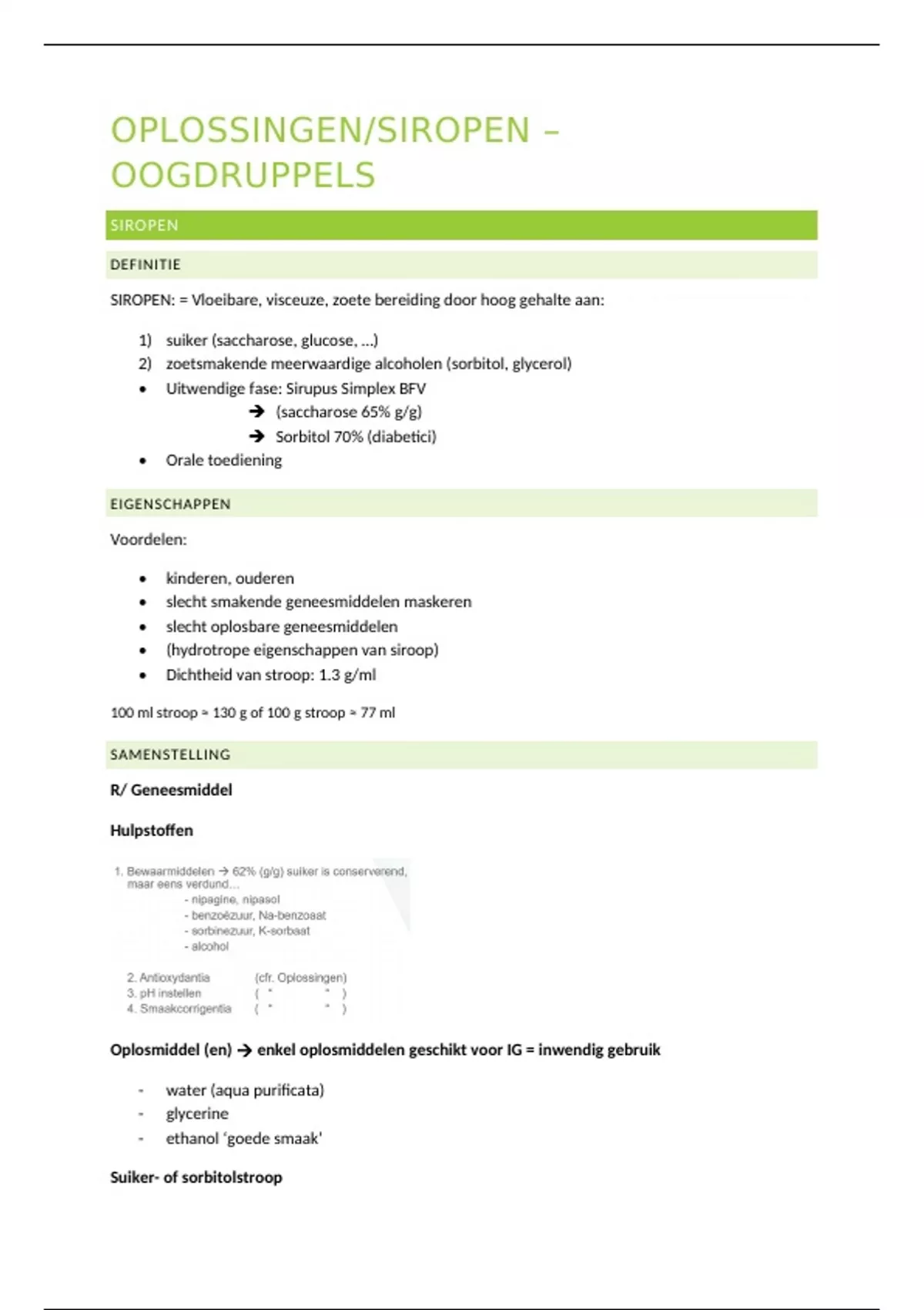 SIROPEN: = Vloeibare, visceuze, zoete bereiding door hoog gehalte aan: