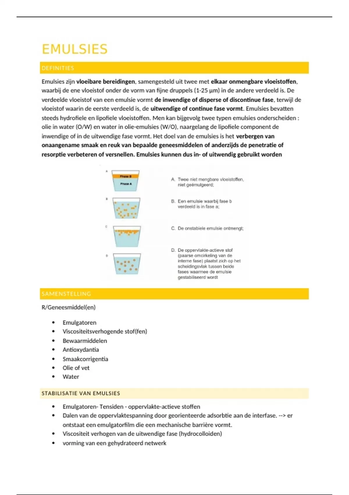 Samenvatting - galenica emulsies
