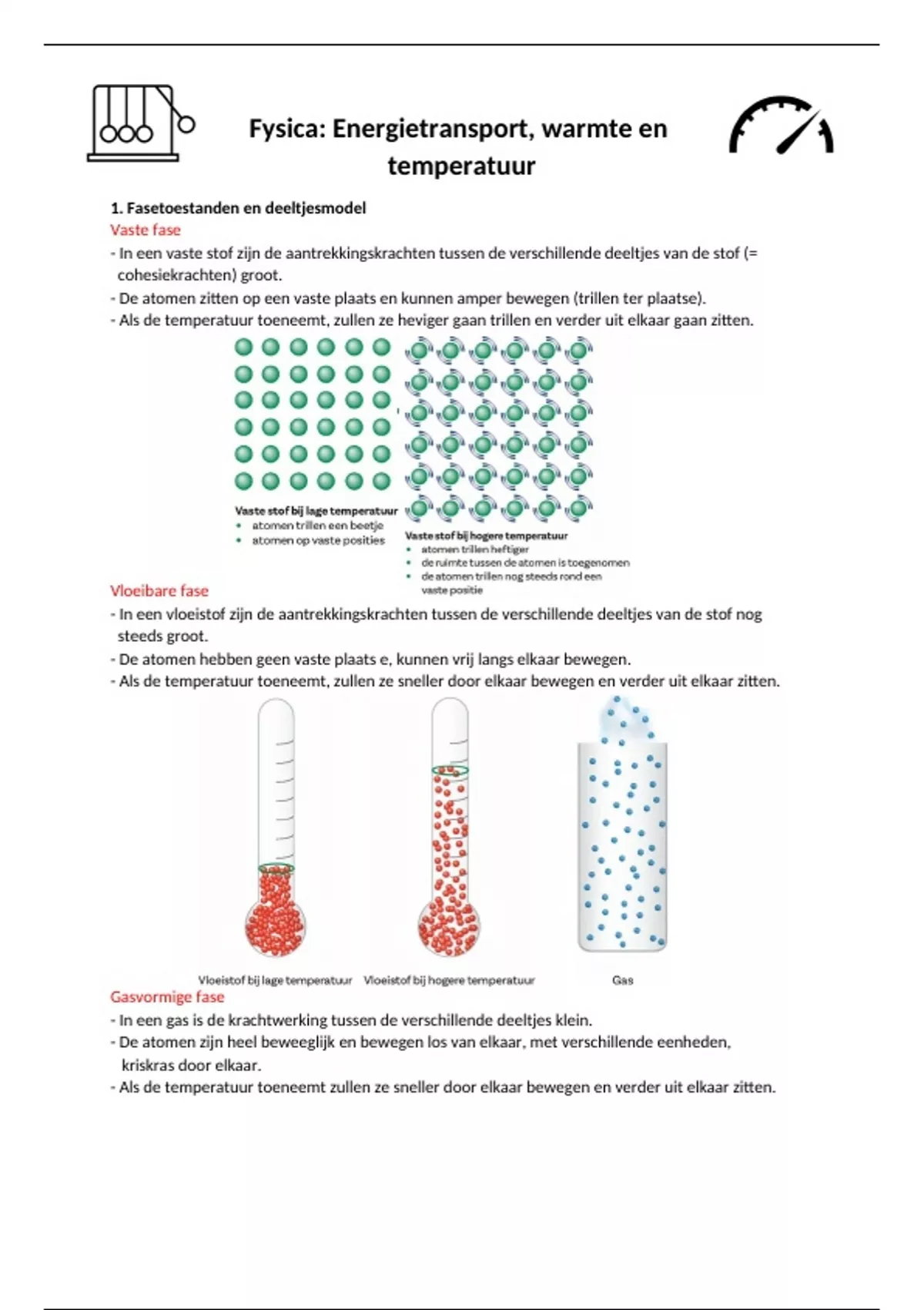 Samenvatting - Fysica 'Energietransport, warmte en temperatuur' GO! Onderwijs