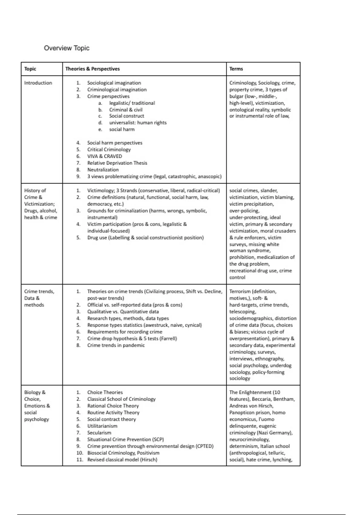 Crime & 2. Crime definitions (natural, functional, social harm, law, victimization, victim blaming,