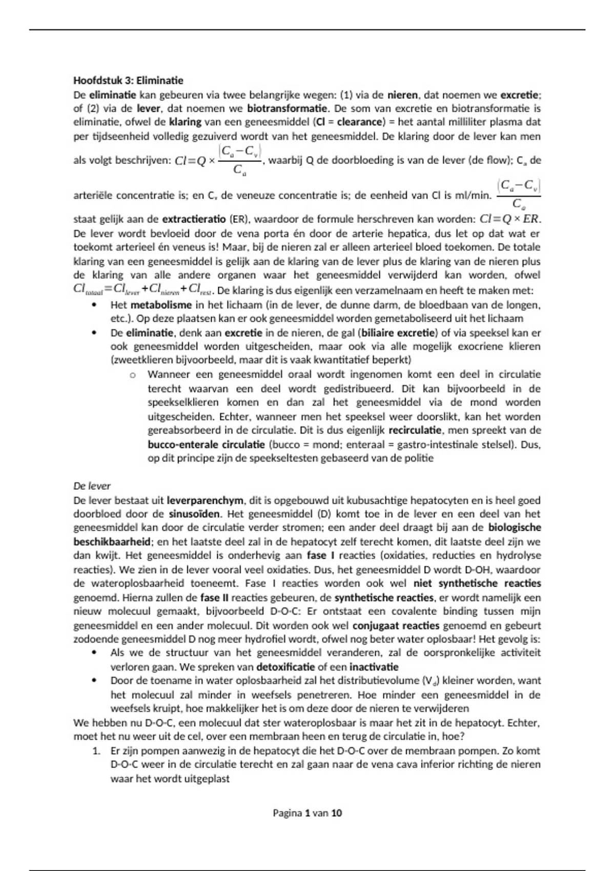 of (2) via de lever, dat noemen we biotransformatie. De som van excretie en biotransformatie is