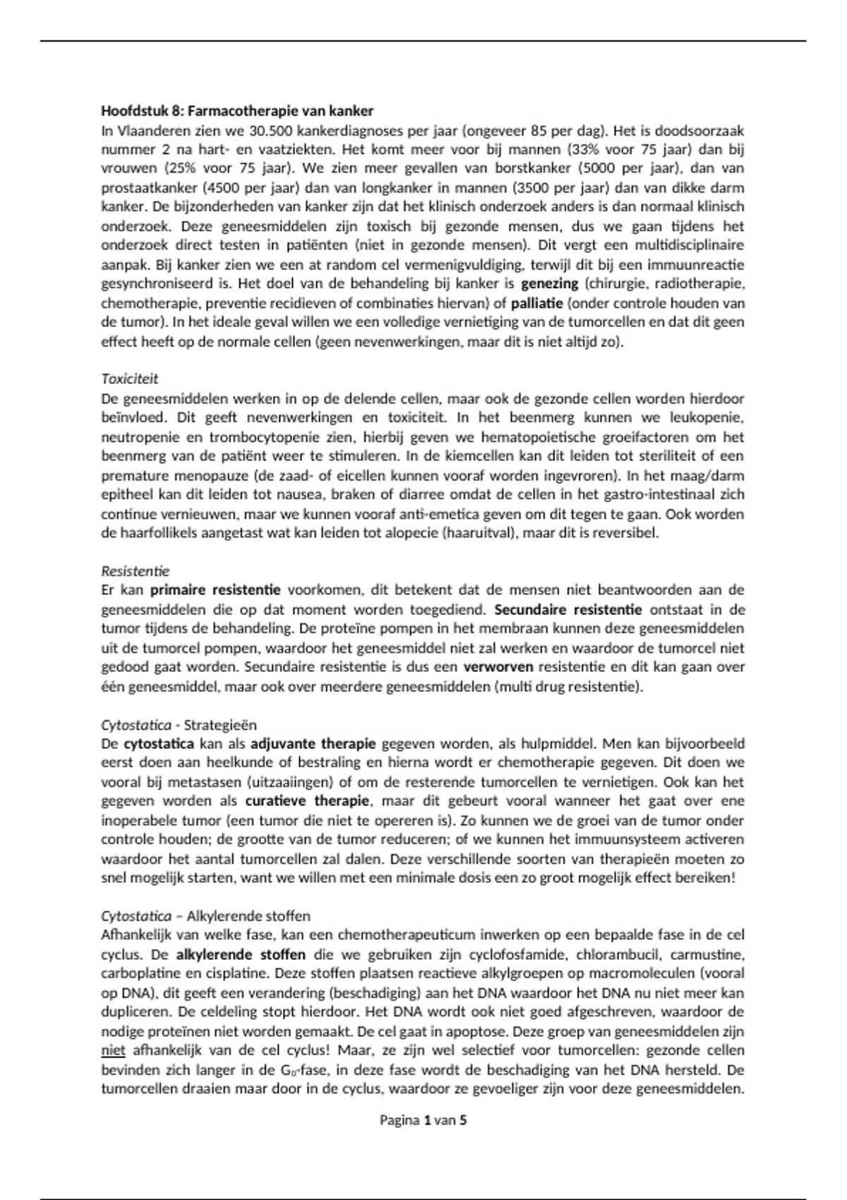 Deel 5, Hoofdstuk 8: Farmacotherapie van kanker