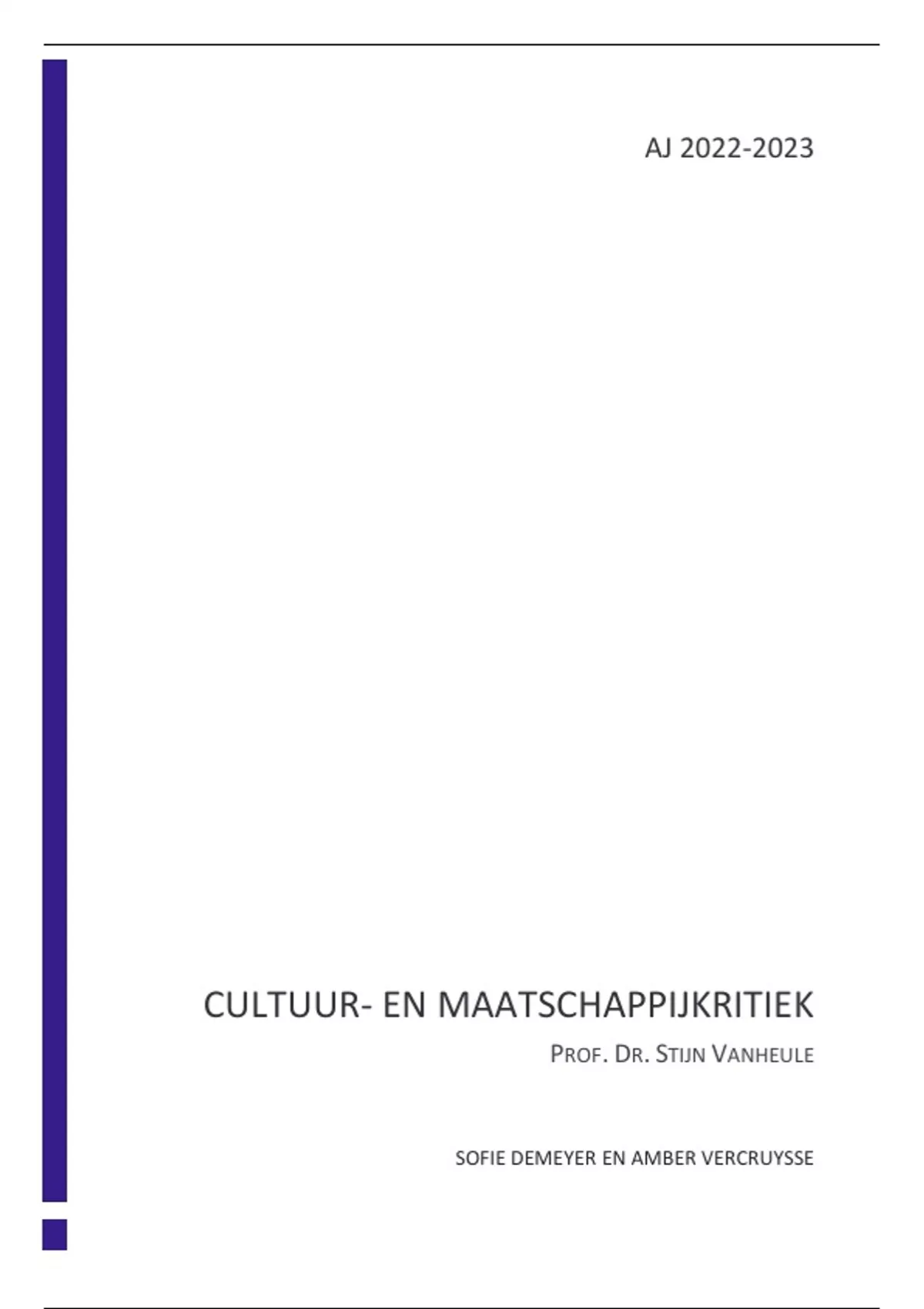 Duidelijke, uitgebreide samenvatting die afwisselt tussen opsommingen, een duidelijke tijdlijn (zie: feminisme) en stukken tekst die tussentijdse samenvattingen bieden. Alle kernwoorden zijn aangeduid. Nette structuur met voldoende plaats om nog dingen bij te schrijven aan de kantlijn. Deze samenvatting heeft op bepaalde plaatsen een andere structuur met meer gebundelde tekst: dit is gericht op het studeren voor een examen met open vragen --> meer in detail en verhalend studeren! Een heel duidelijke structuur doorheen de drie iets abstractere colleges van prof. Matthias Desmet. Combinatie tussen lessen, alle lesnotities, en medewerking van een medestudent. Ik haalde hiermee een 18/20
