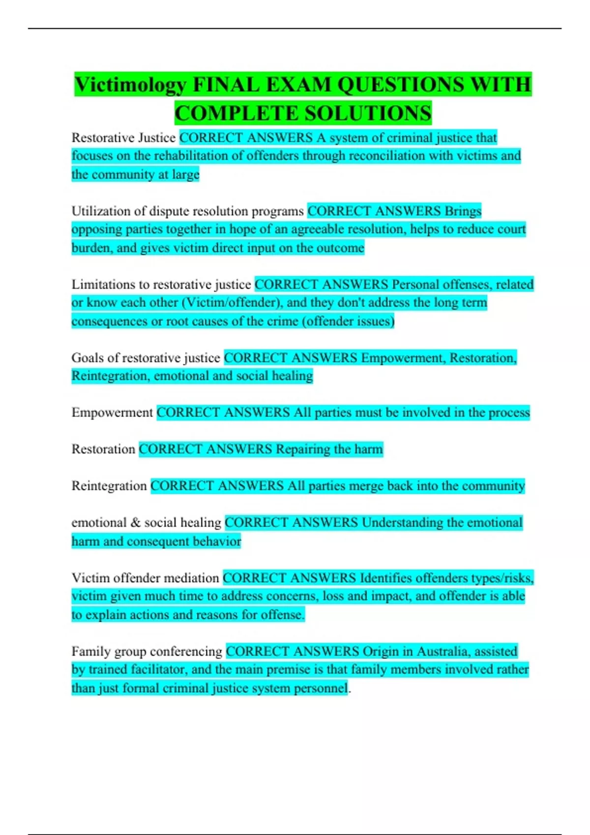 victimology final exam questions with complete sol