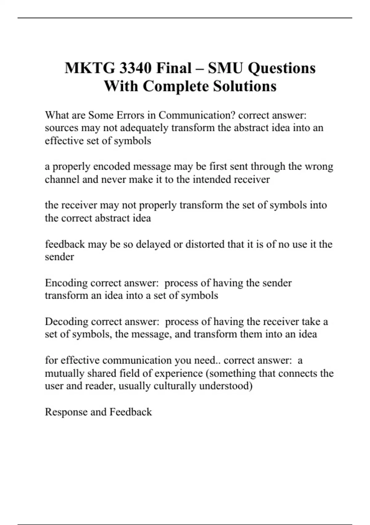 MKTG 3340 Final – SMU Questions With Complete Solutions
