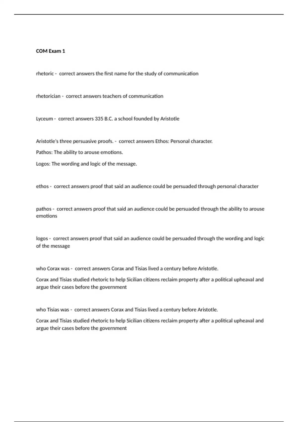 COM Exam 1 questions and correct answers