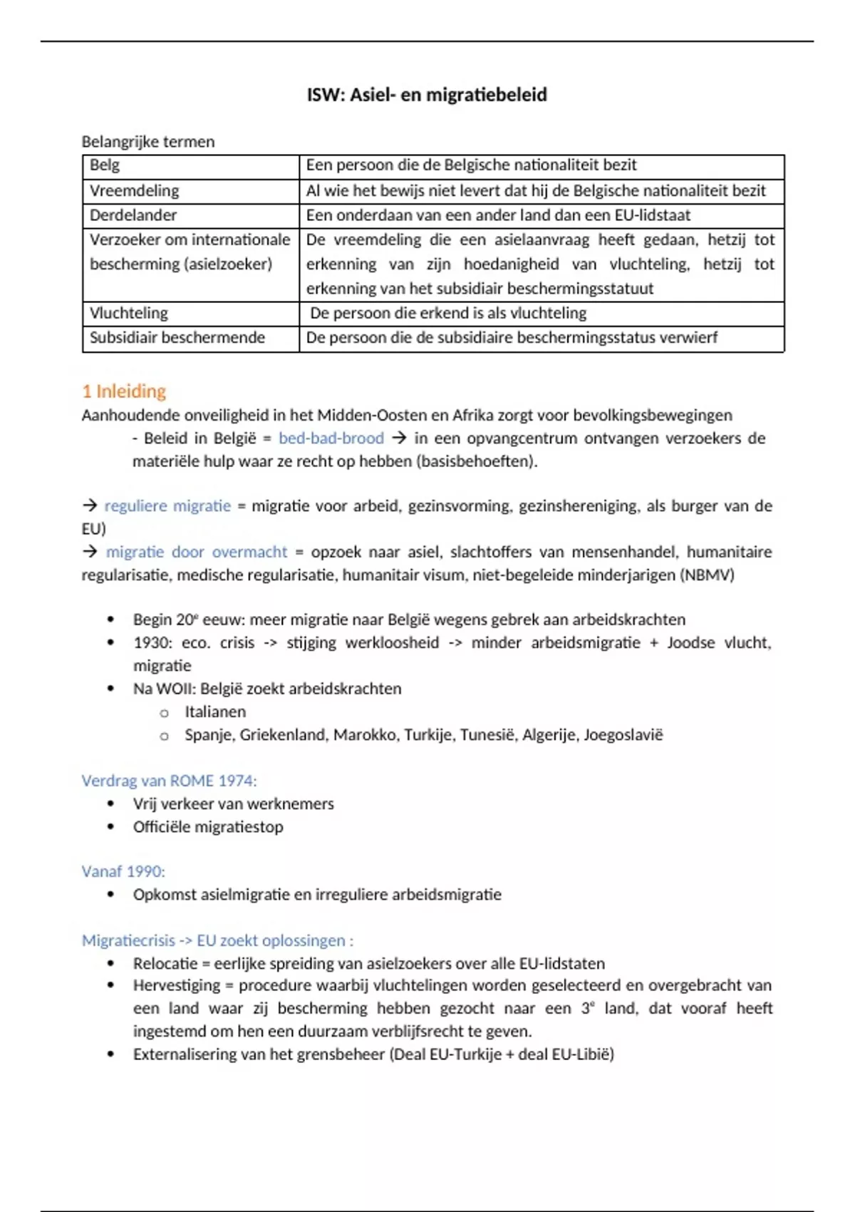 Volledige samenvatting van het thema asiel- en migratiebeleid van 20 pagina's.