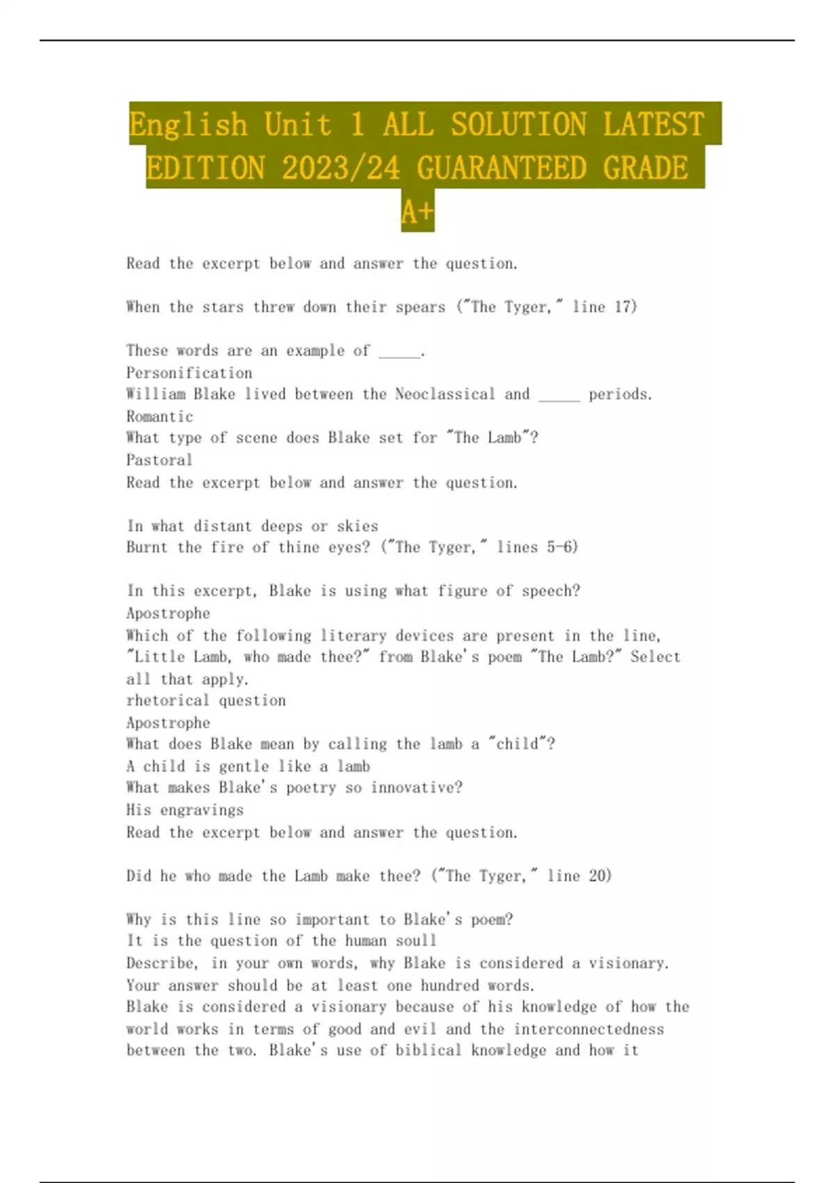 English Unit 1 ALL SOLUTION LATEST EDITION 2023/24 GUARANTEED GRADE A+
