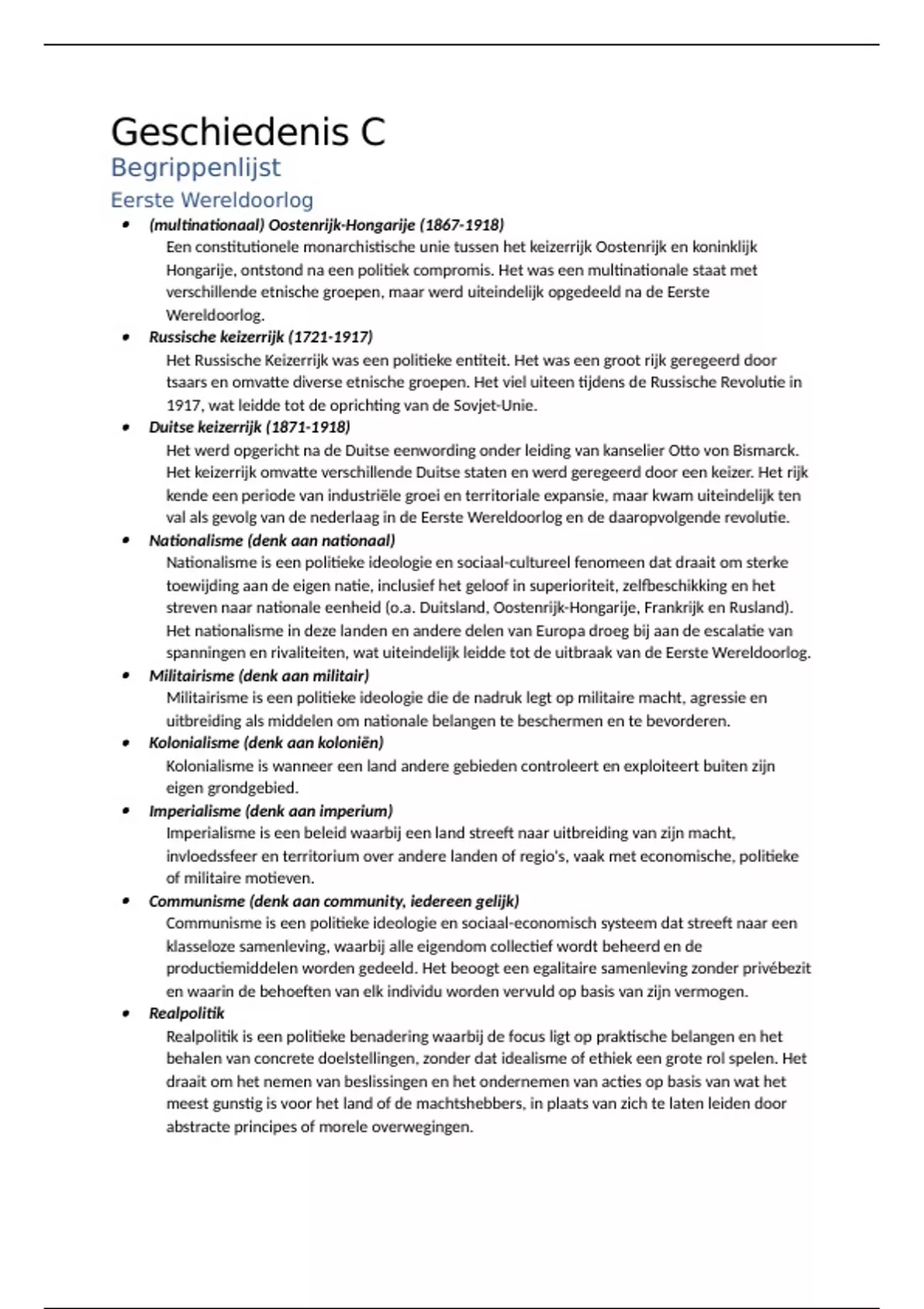 streven naar nationale eenheid (o.a. Duitsland, Oostenrijk-Hongarije, Frankrijk en Rusland).