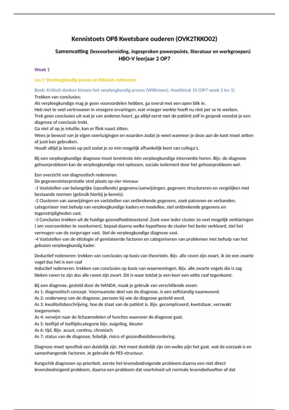 Kennistoets OP8 Kwetsbare ouderen (OVK2TKKO02)