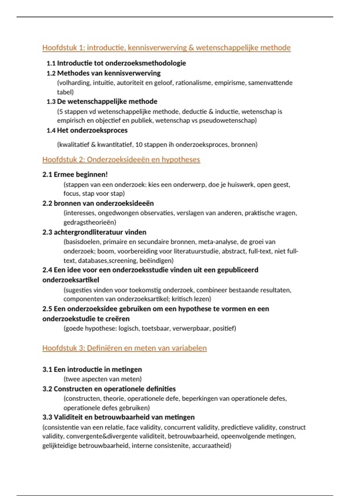 uitgebreide inhoudstafel methodologie