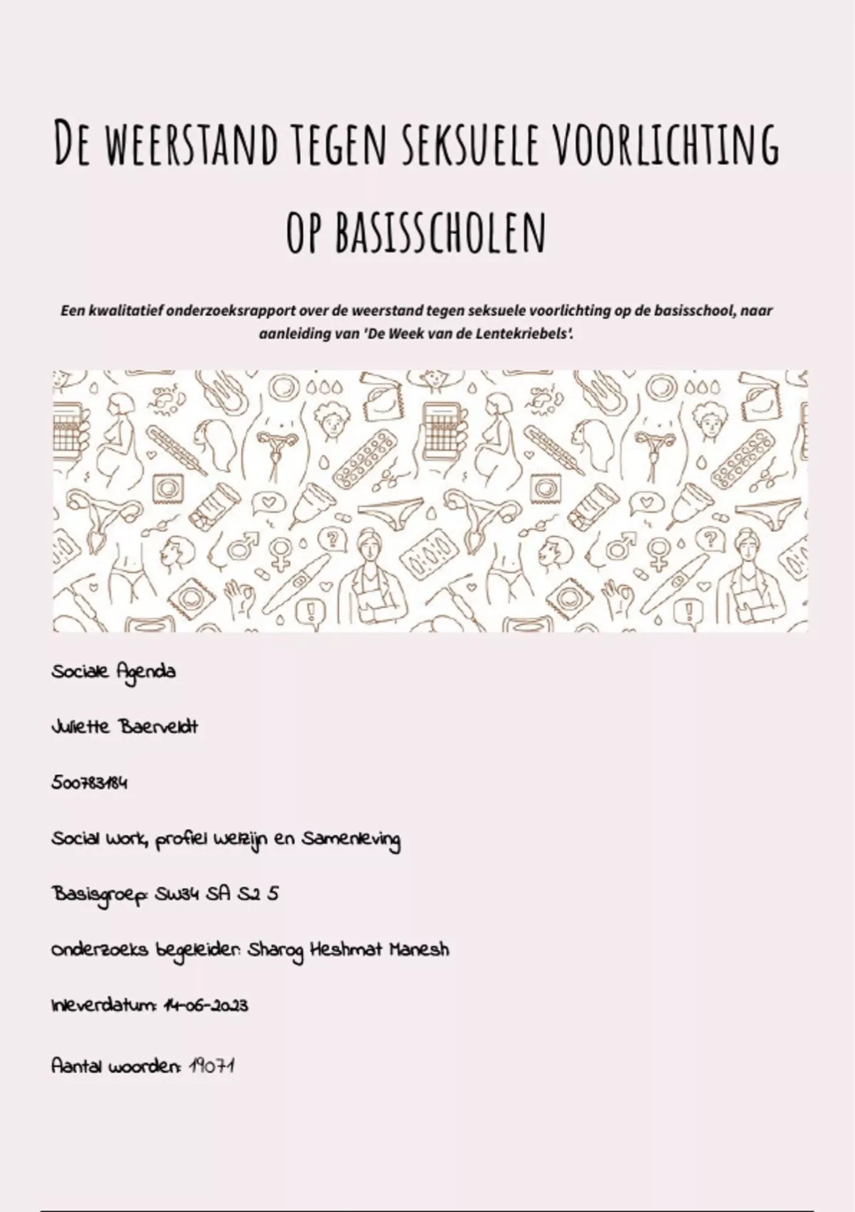 Dit onderzoek gaat over de weerstand tegen seksuele voorlichting op basisscholen, naar aanleiding
