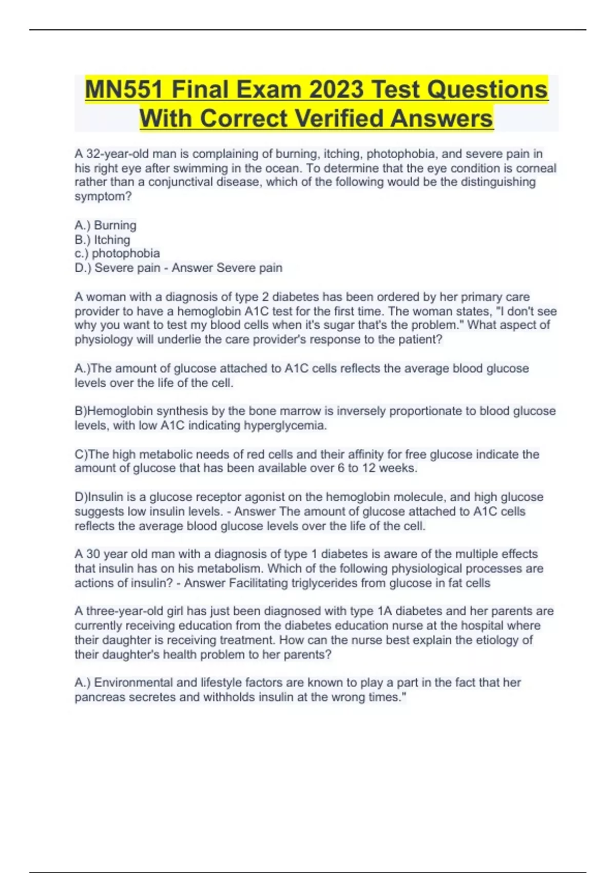 MN551 Final Exam 2023 Test Questions With Correct Verified Answers