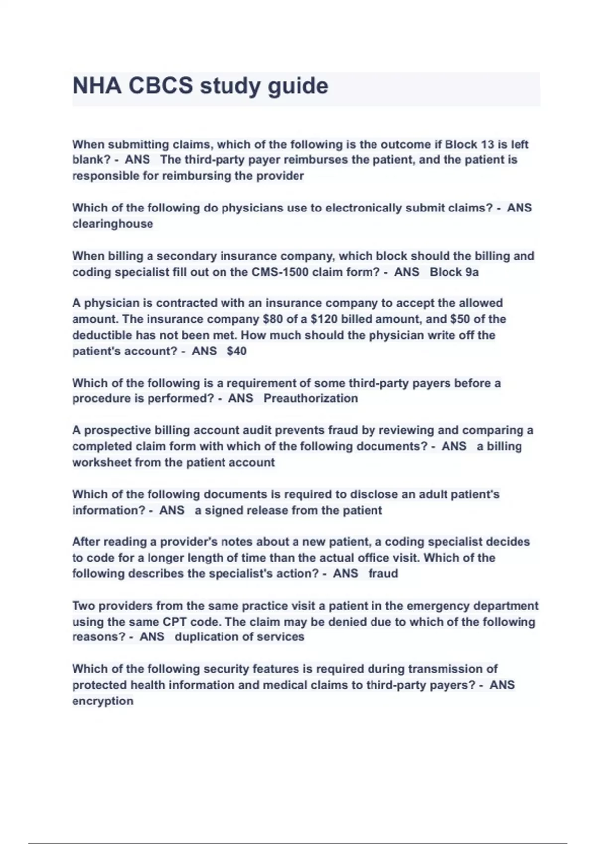 NHA CBCS study guide QUESTIONS & ANSWERS 2023 ( A+ GRADED 100% VERIFIED)