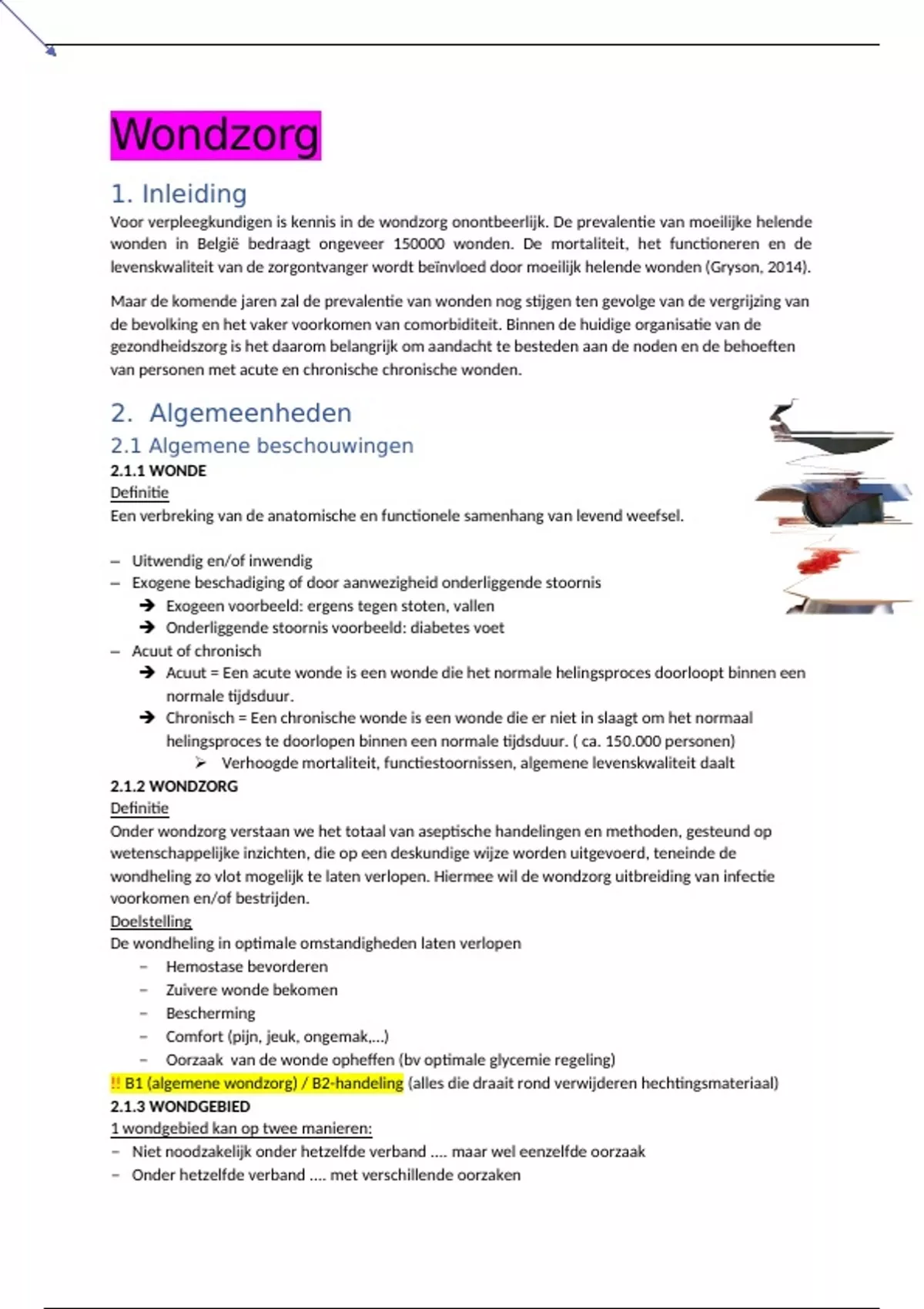 !! B1 (algemene wondzorg) / B2-handeling (alles die draait rond verwijderen hechtingsmateriaal)