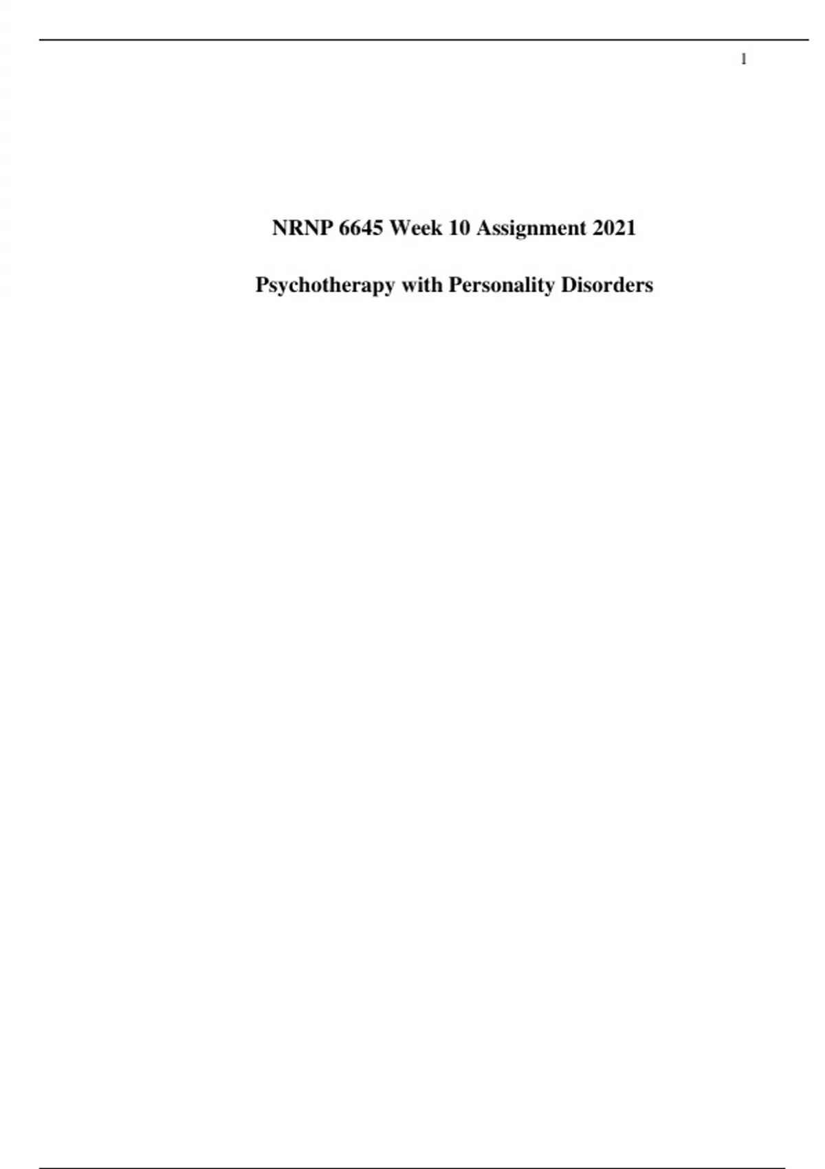 1 NRNP 6645 Week 10 Assignment 2021 Psychotherapy with Personality Disorderswith Personality Disorders