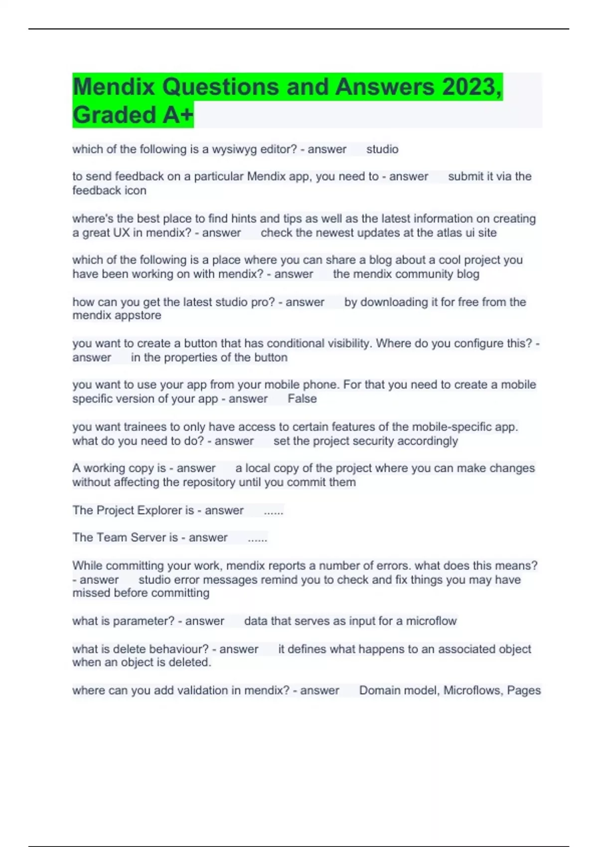 Mendix Questions and Answers 2023, Graded A+