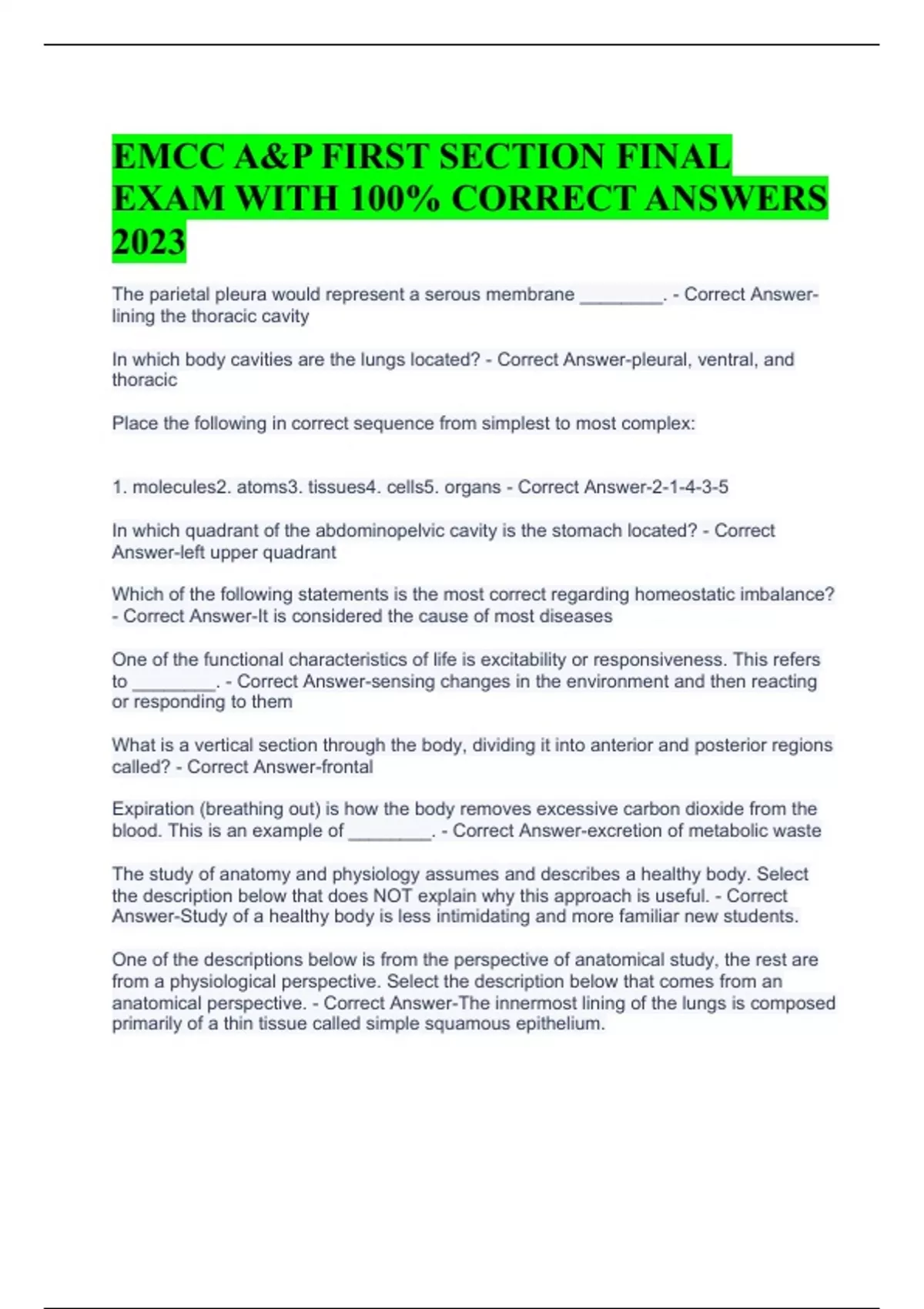 EMCC A&P FIRST SECTION FINAL EXAM WITH 100% CORRECT ANSWERS 2023