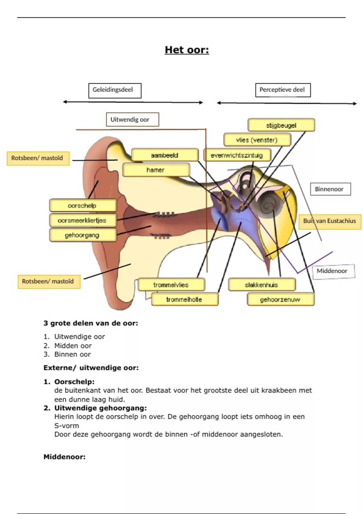 3 grote delen van de oor:
