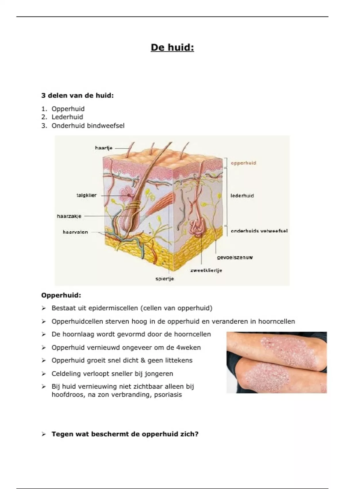  Tegen wat beschermt de opperhuid zich?