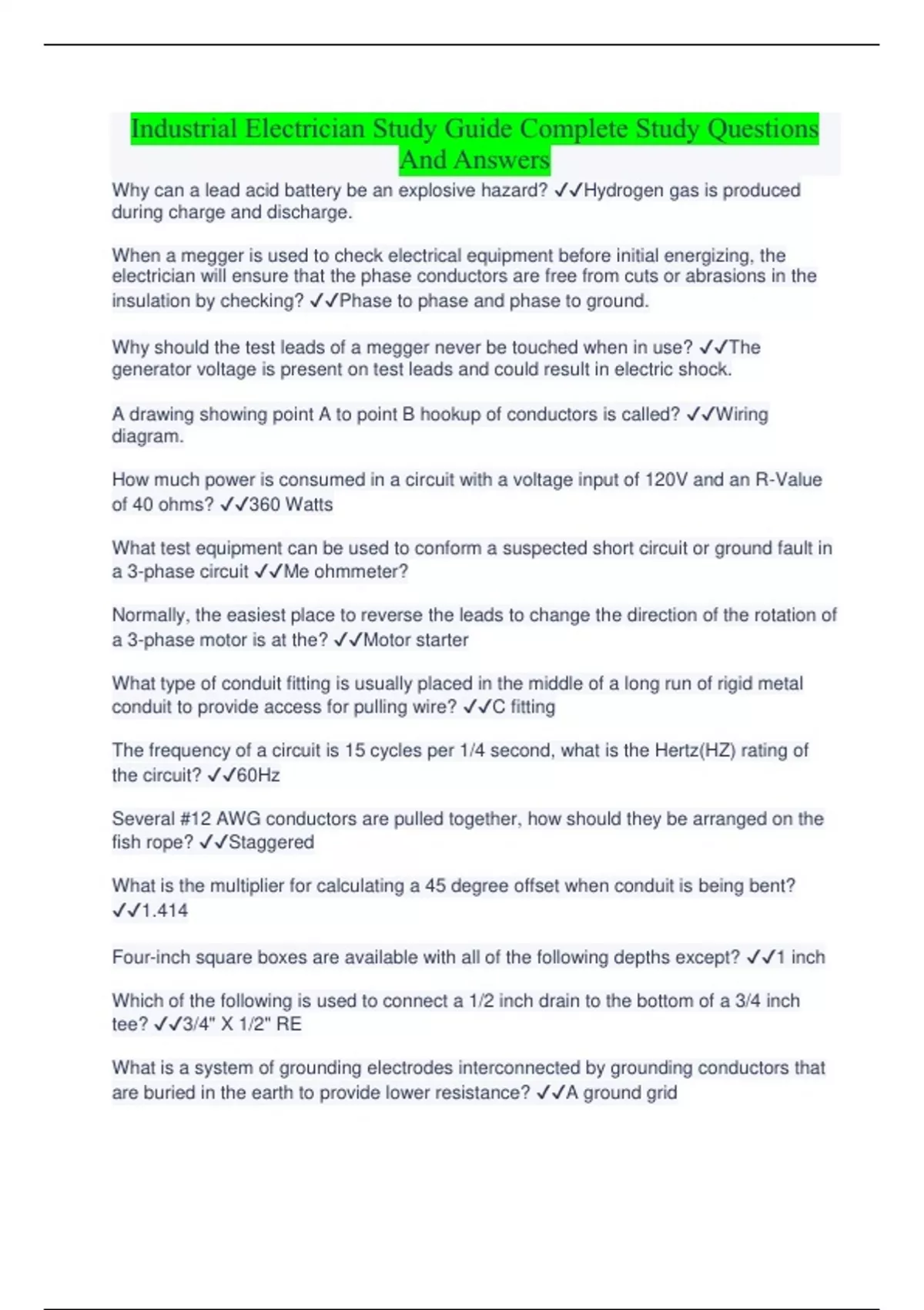 Industrial Electrician Study Guide Complete Study Questions And Answers