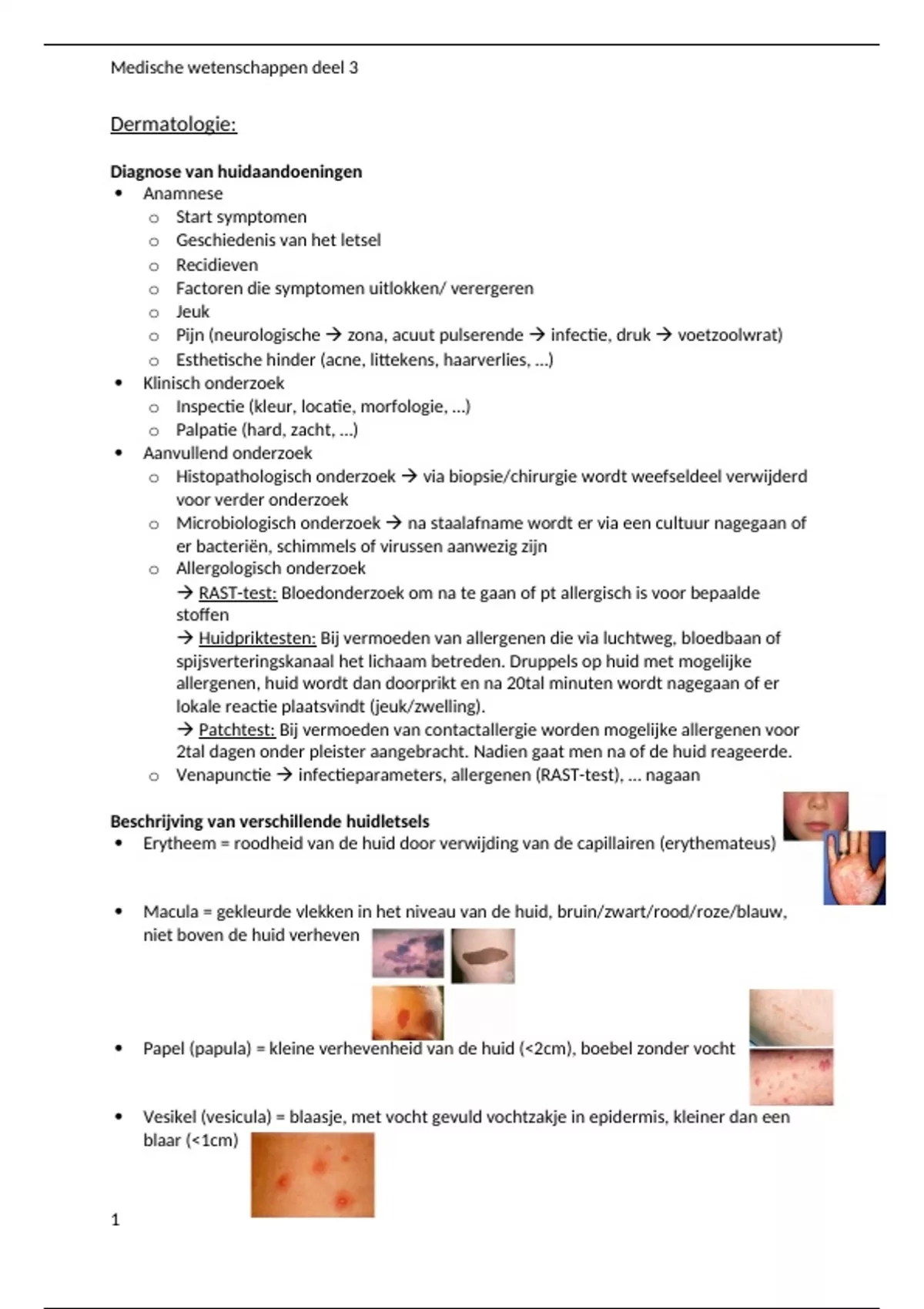 Blaar (bulla) = blein, met vocht gevulde holte in epidermis, lijkt op vesikel maar is >1cm