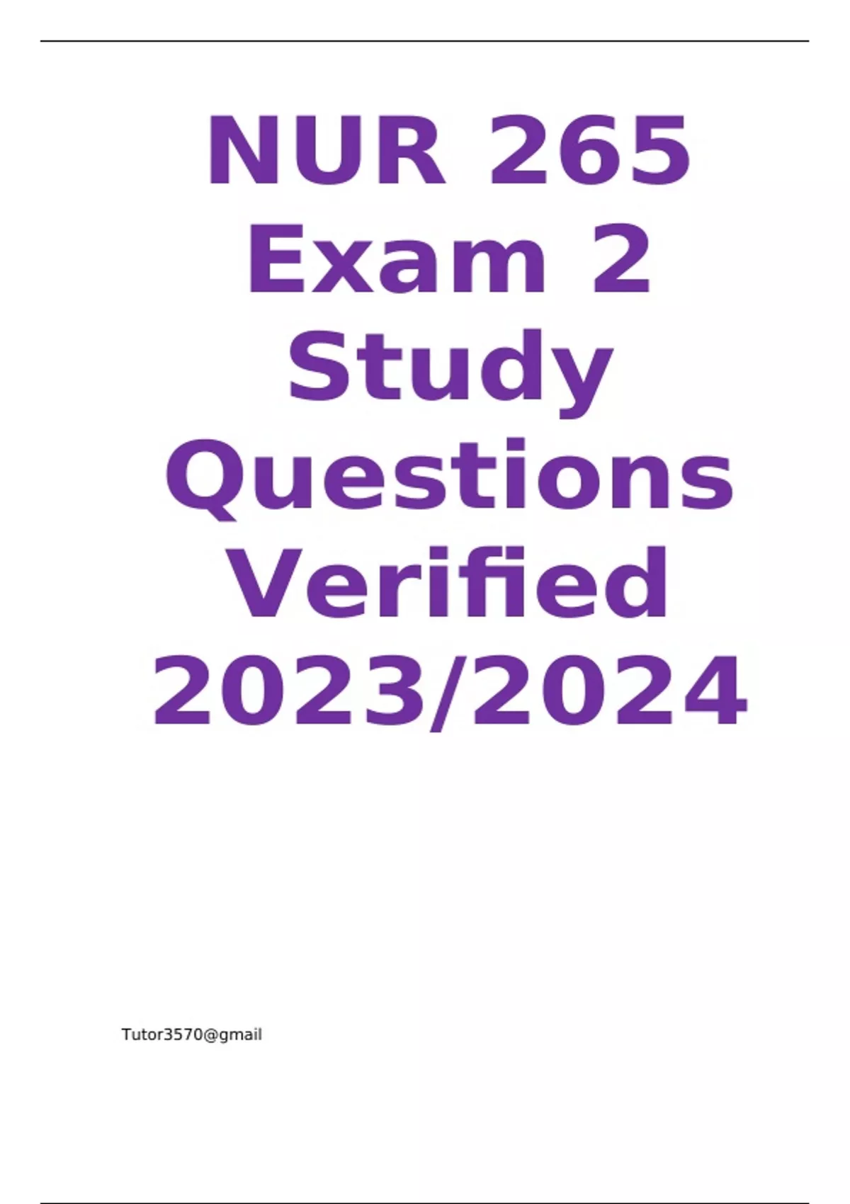 NUR 265 Exam 2 Study Questions Verified 2023/2024