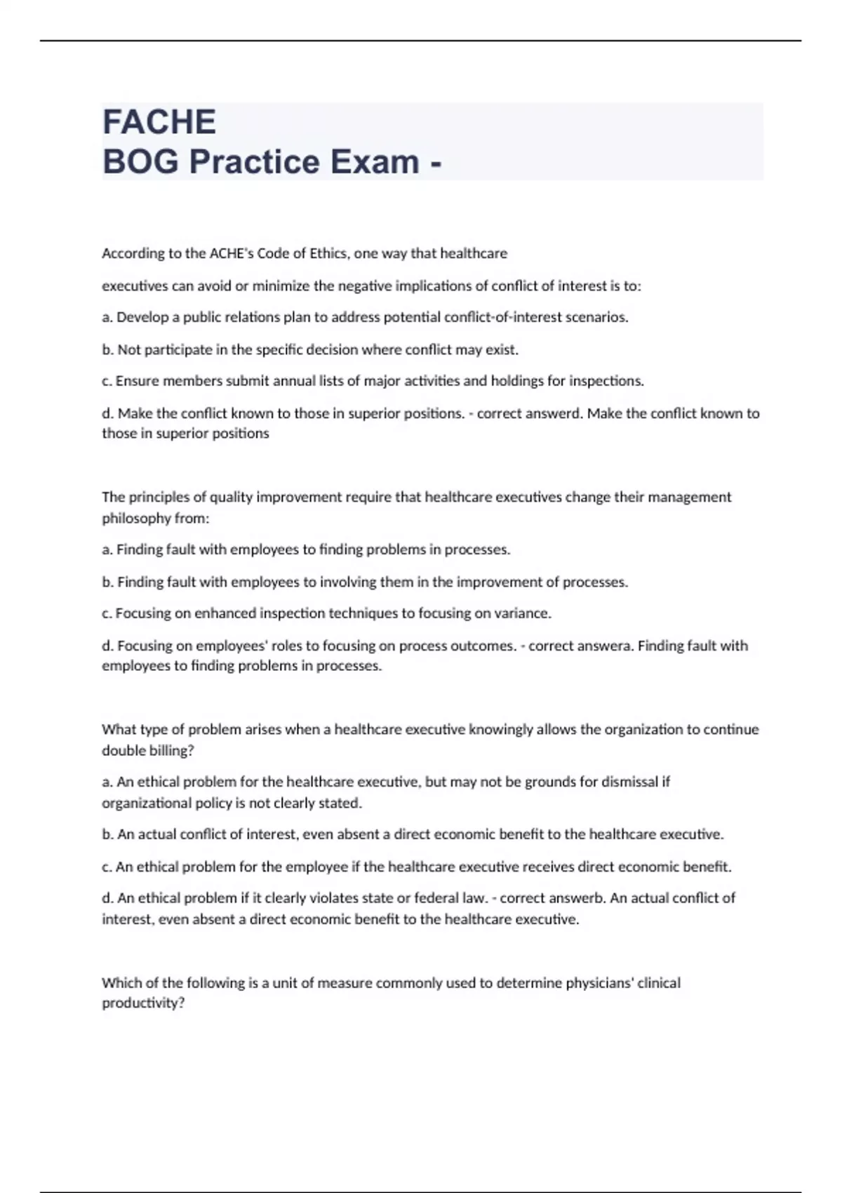 FACHE Practice Test exam 2023 with 100% correct answers