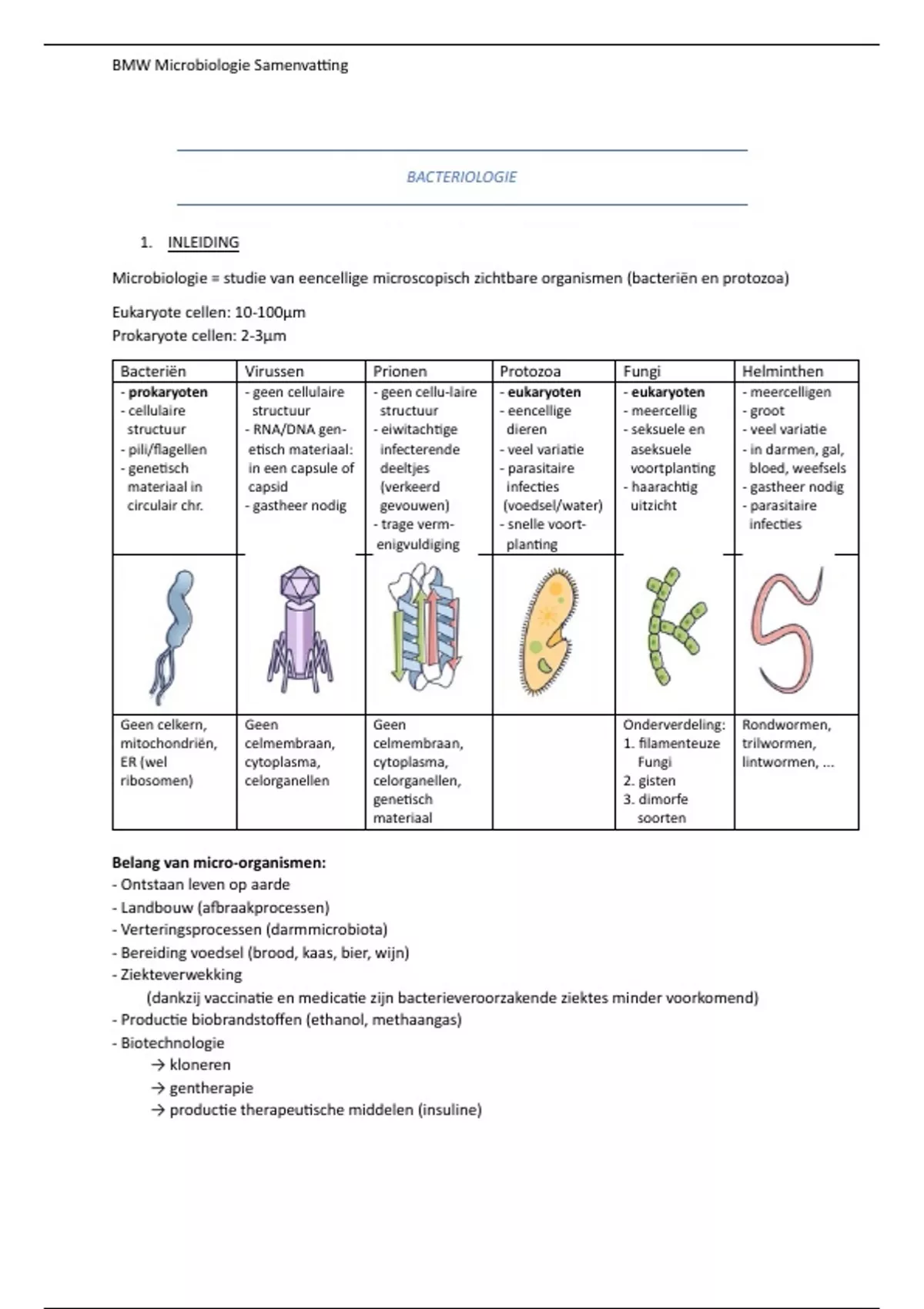 Microbiologie = studie van eencellige microscopisch zichtbare organismen (bacteriën en protozoa)