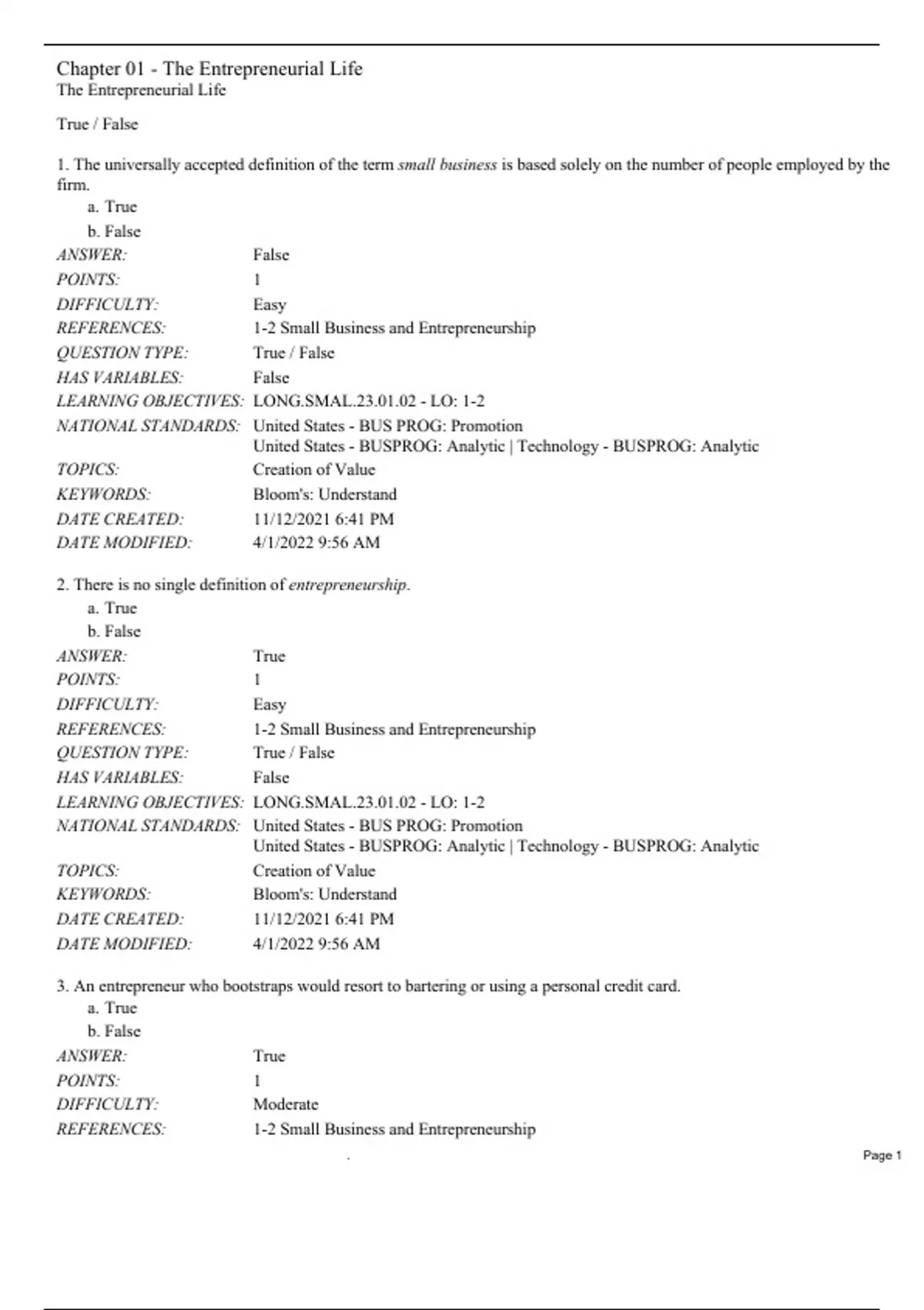 REFERENCES: 1-2 Small Business and Entrepreneurship