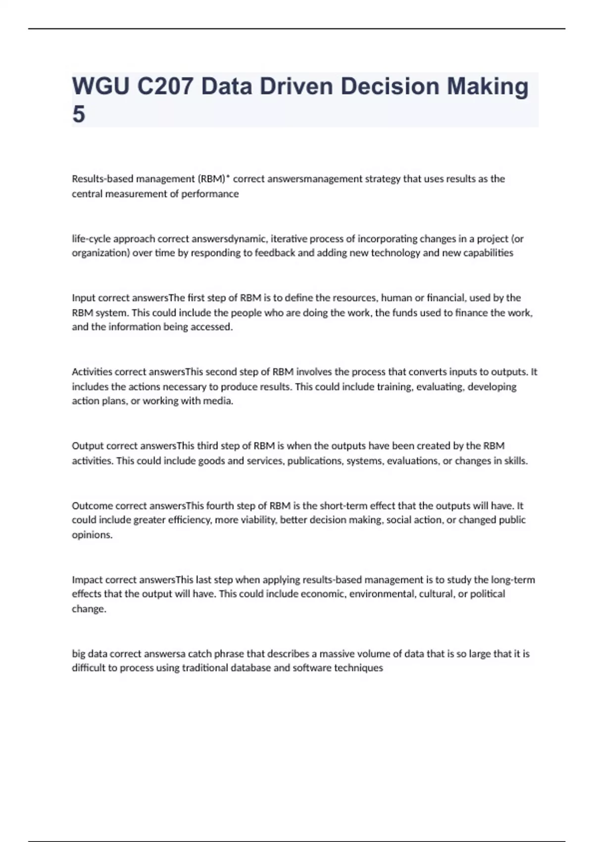 WGU C207 Data Driven Decision Making 5 exam 2023 with complete answers