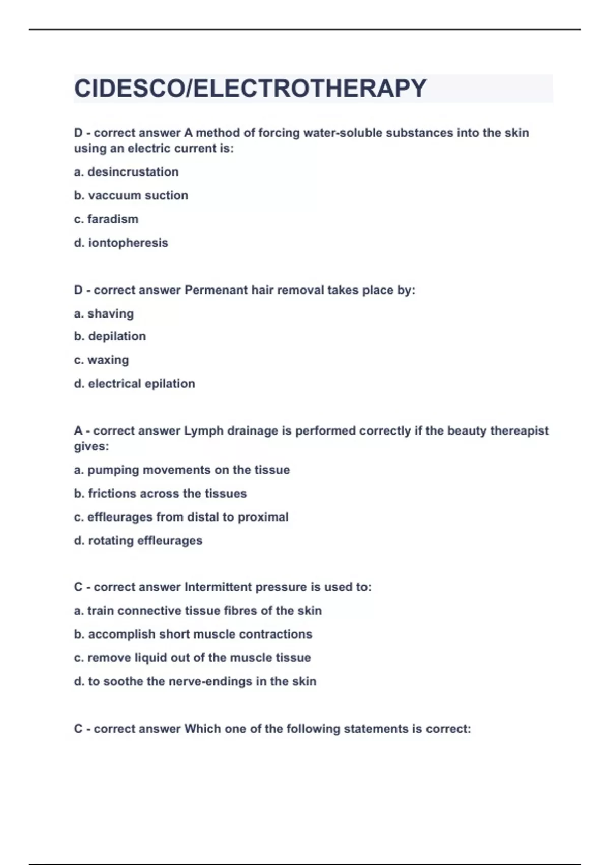 CIDESCO/ELECTROTHERAPY|UPDATED&VERIFIED|100% SOLVED|GUARANTEED SUCCESS
