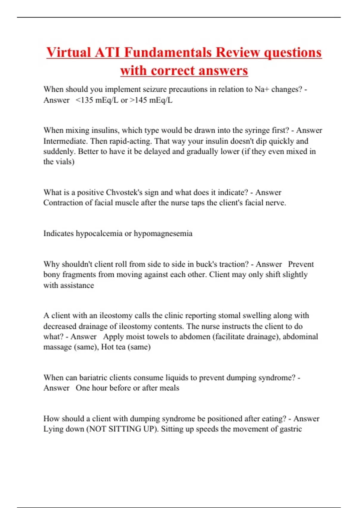 Virtual ATI Fundamentals Review questions with correct answers