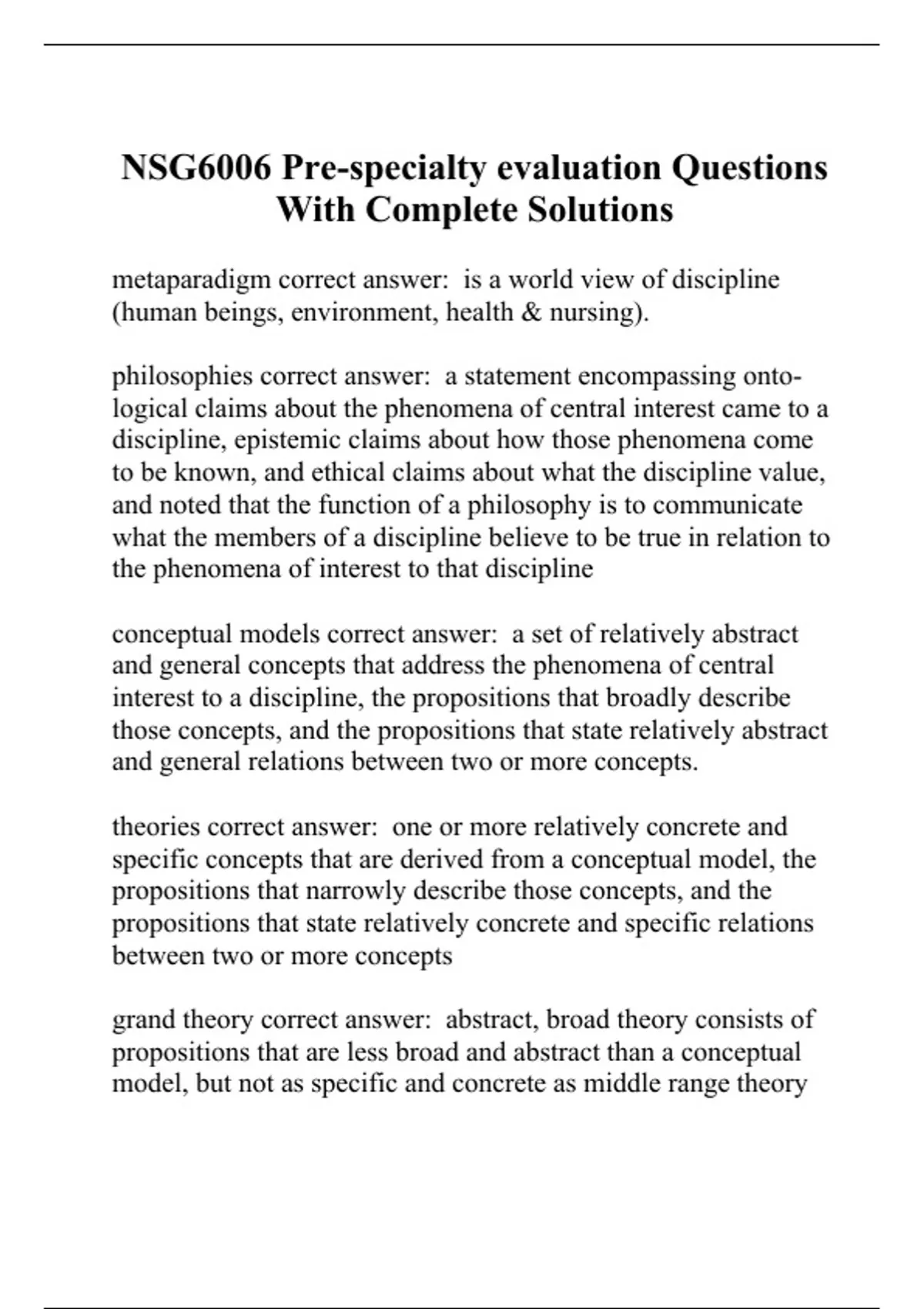 NSG6006 Pre-specialty evaluation Questions With Complete Solutions