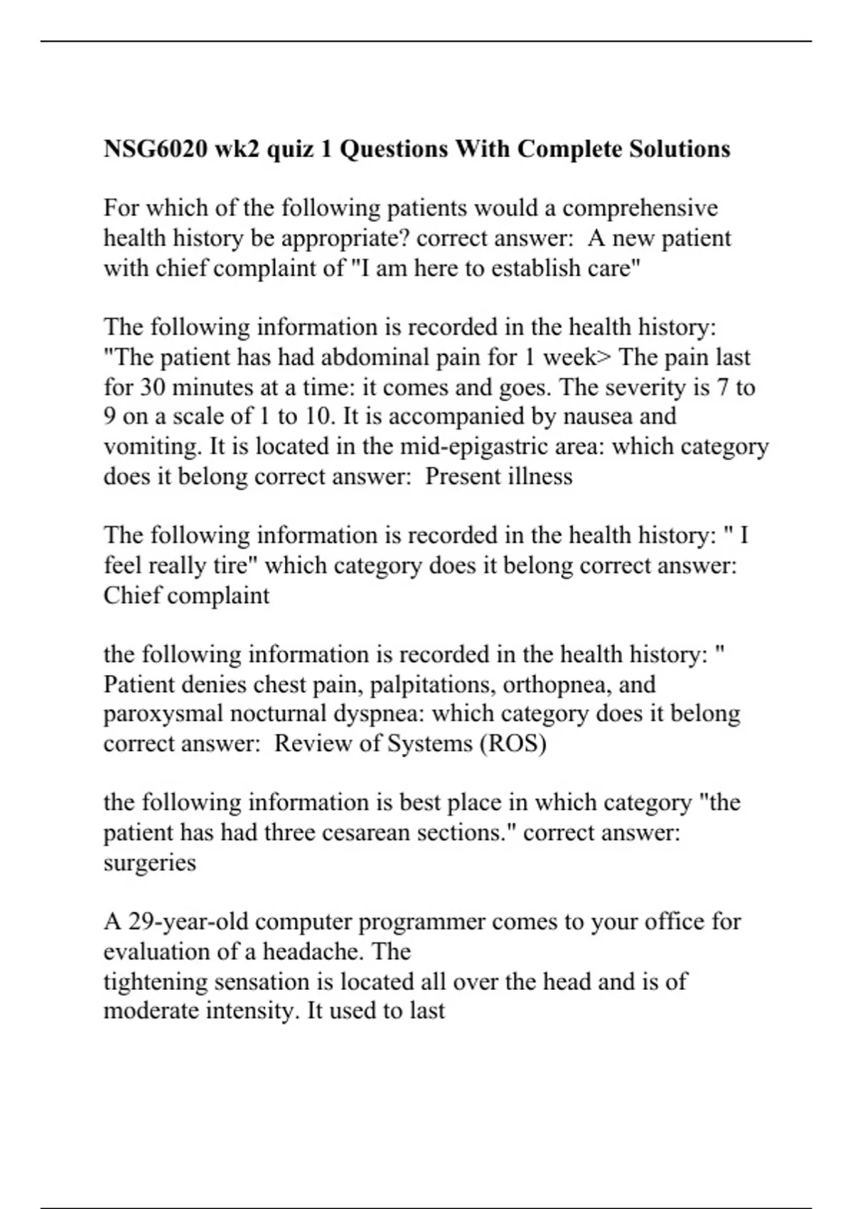 NSG6020 wk2 quiz 1 Questions With Complete Solutions.