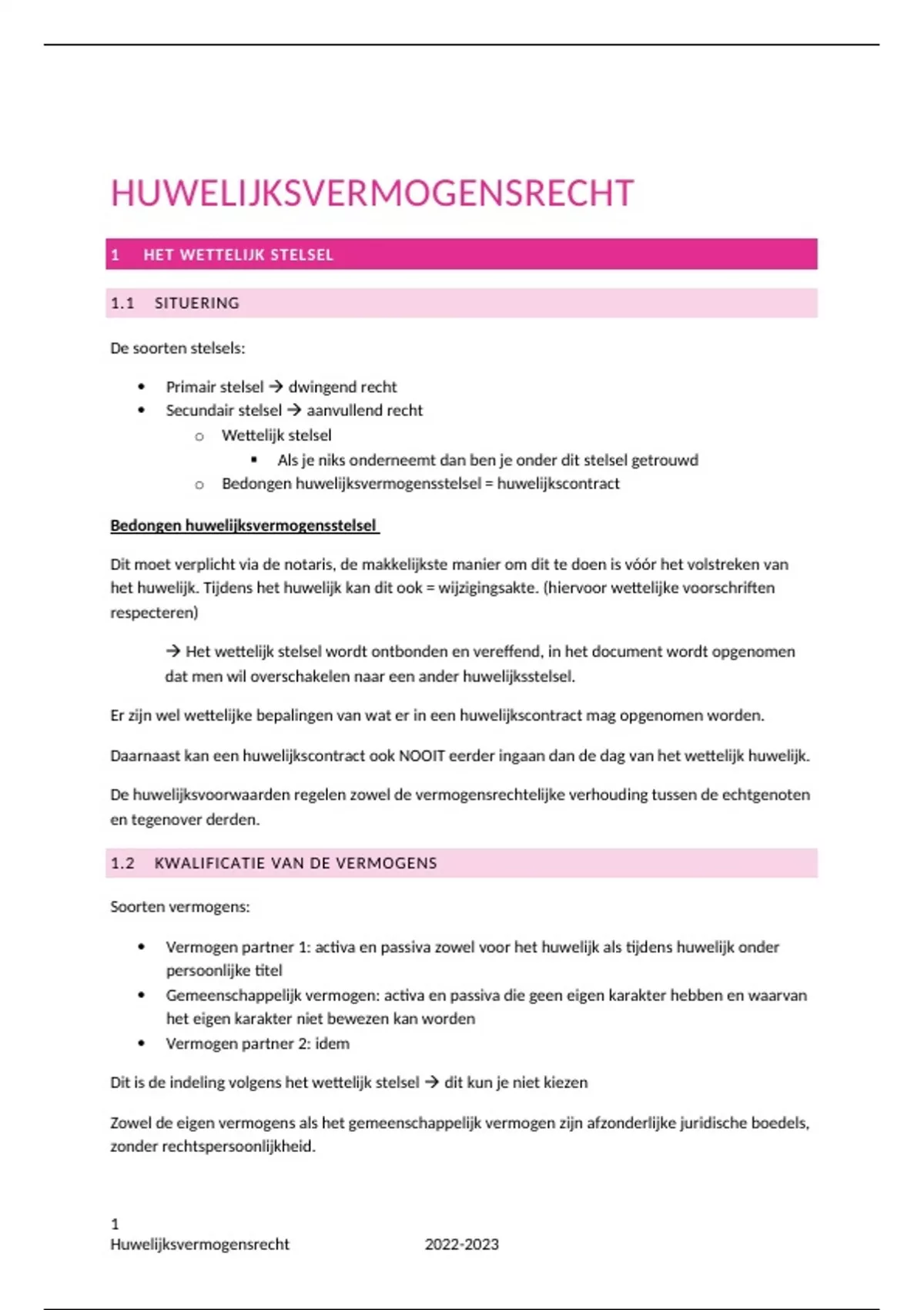 Huwelijksvermogensrecht 2022-2023