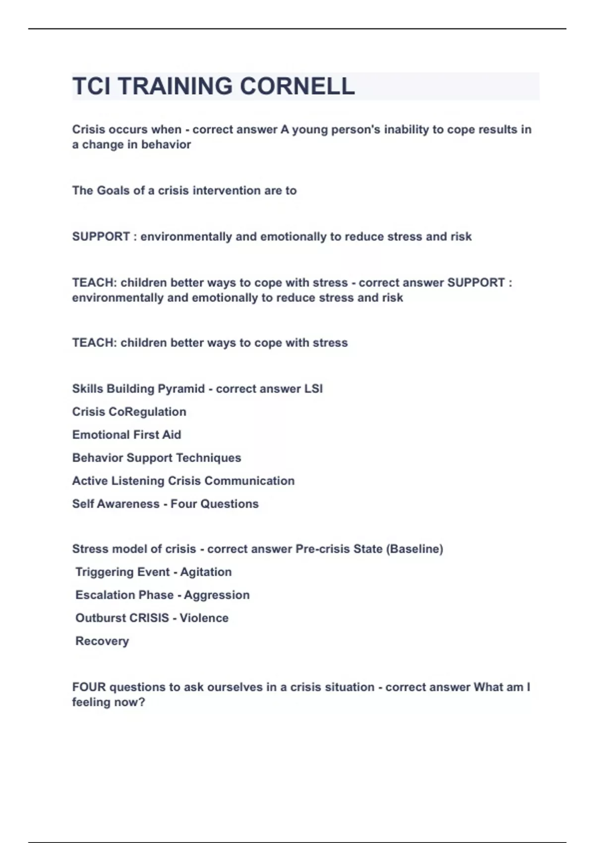 TCI TRAINING CORNELL|UPDATED&VERIFIED|100% SOLVED|GUARANTEED SUCCESS