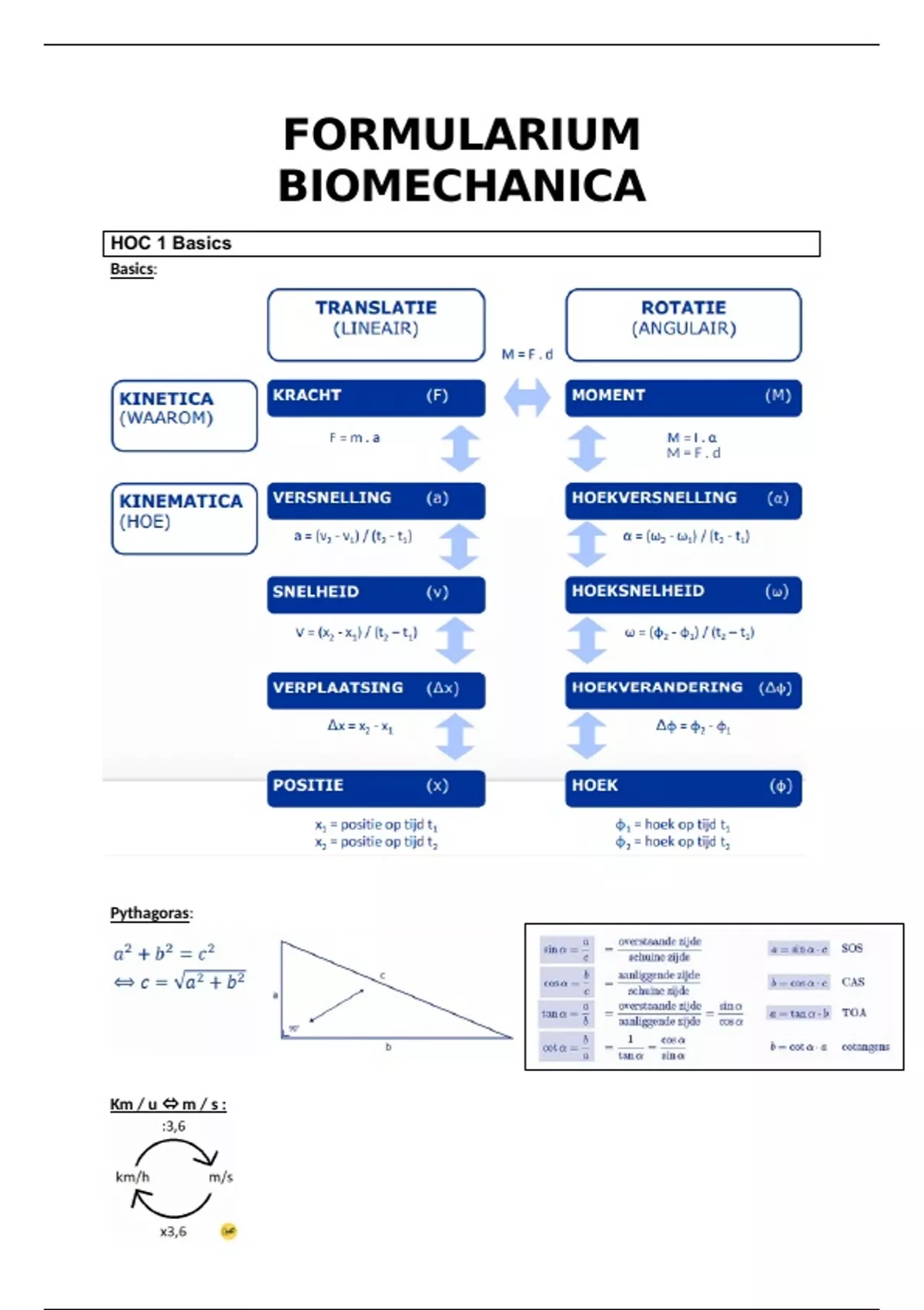 Dit is een formularium van het vak biomechanica voor het tweede jaar kinesitherapie aan de VUB. Alle belangrijkste formules staan hierin.