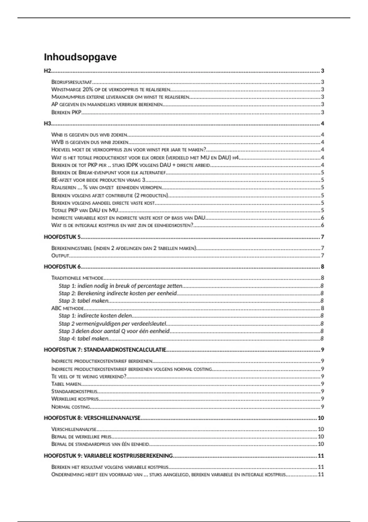 ONDERNEMING HEEFT EEN VOORRAAD VAN … STUKS AANGELEGD, BEREKEN VARIABELE EN INTEGRALE KOSTPRIJS....................11