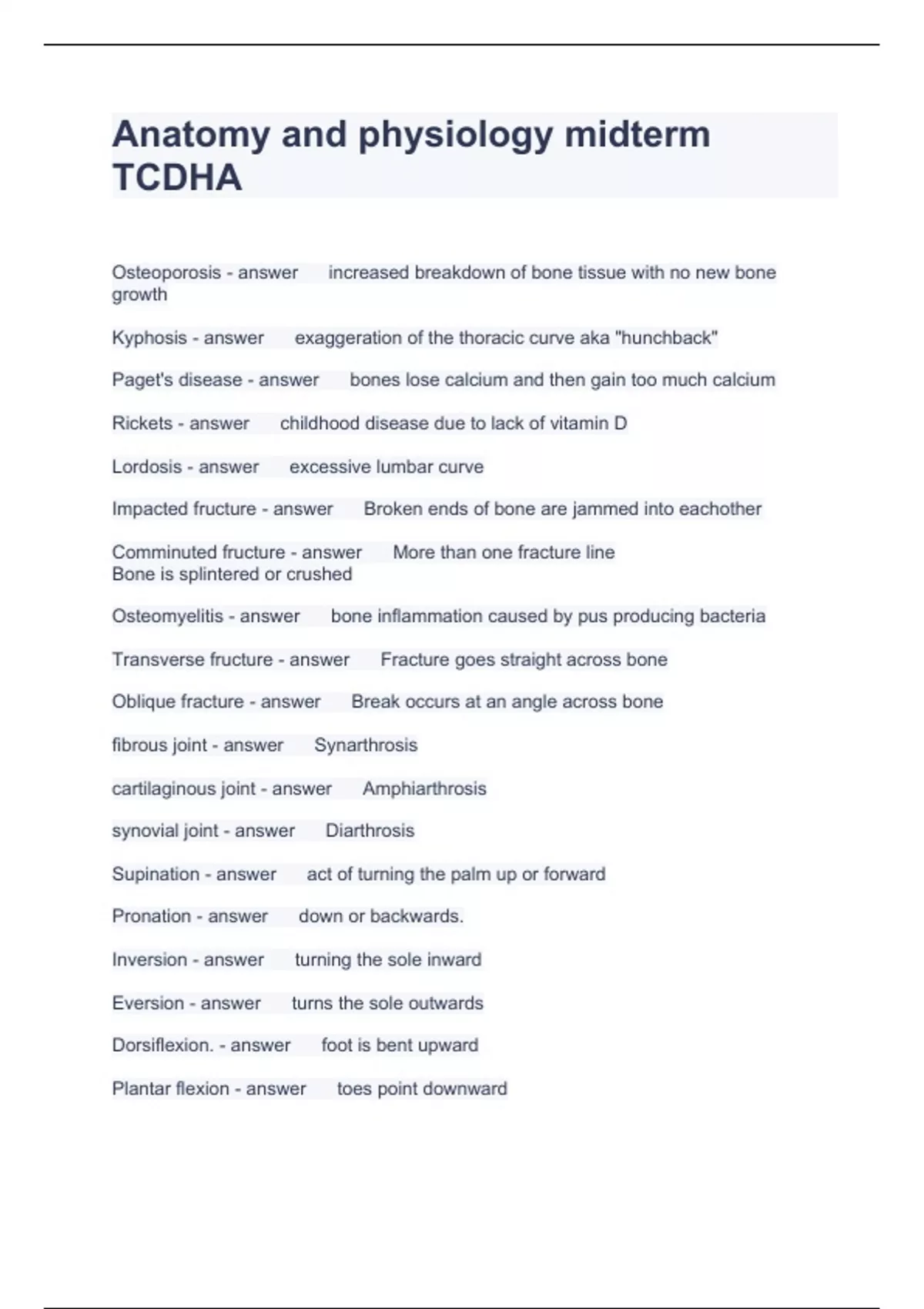 Anatomy and physiology midterm TCDHA Questions Answered 100% correct