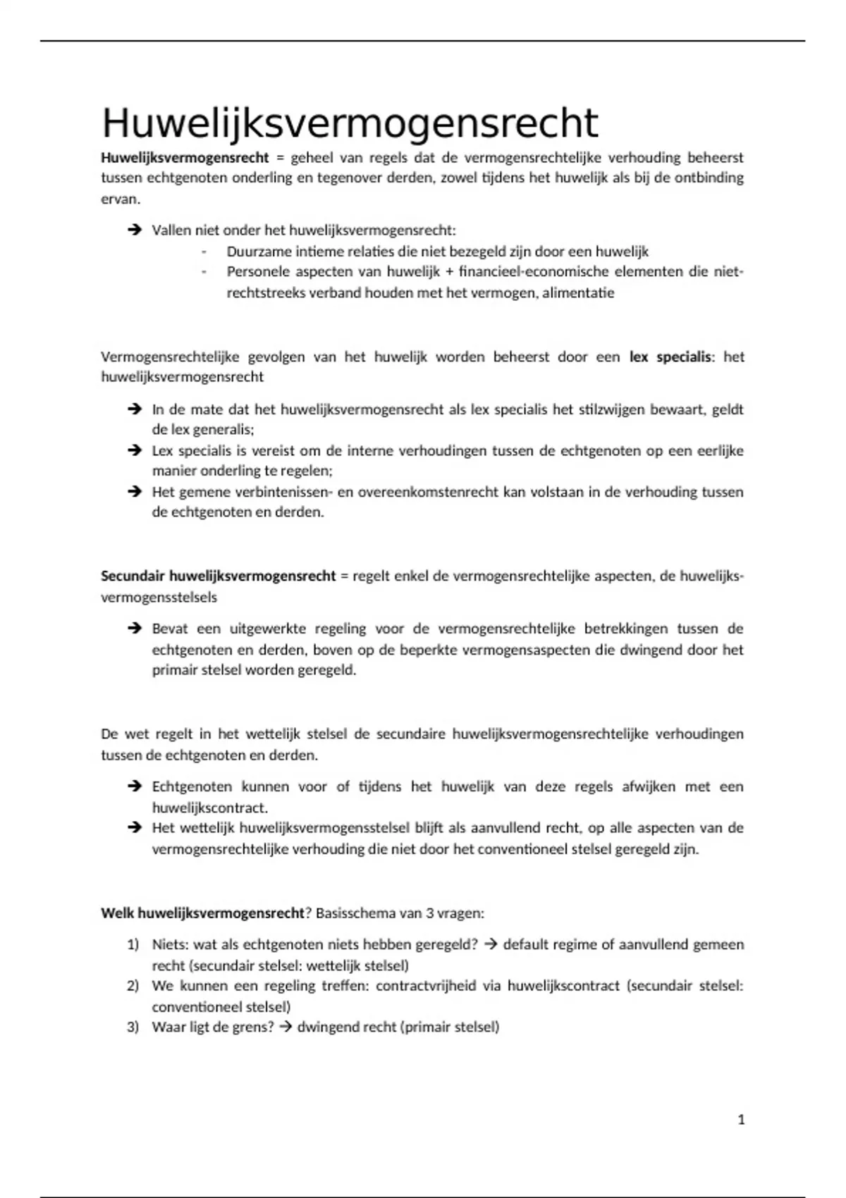 Huwelijksvermogensrecht - samenvatting