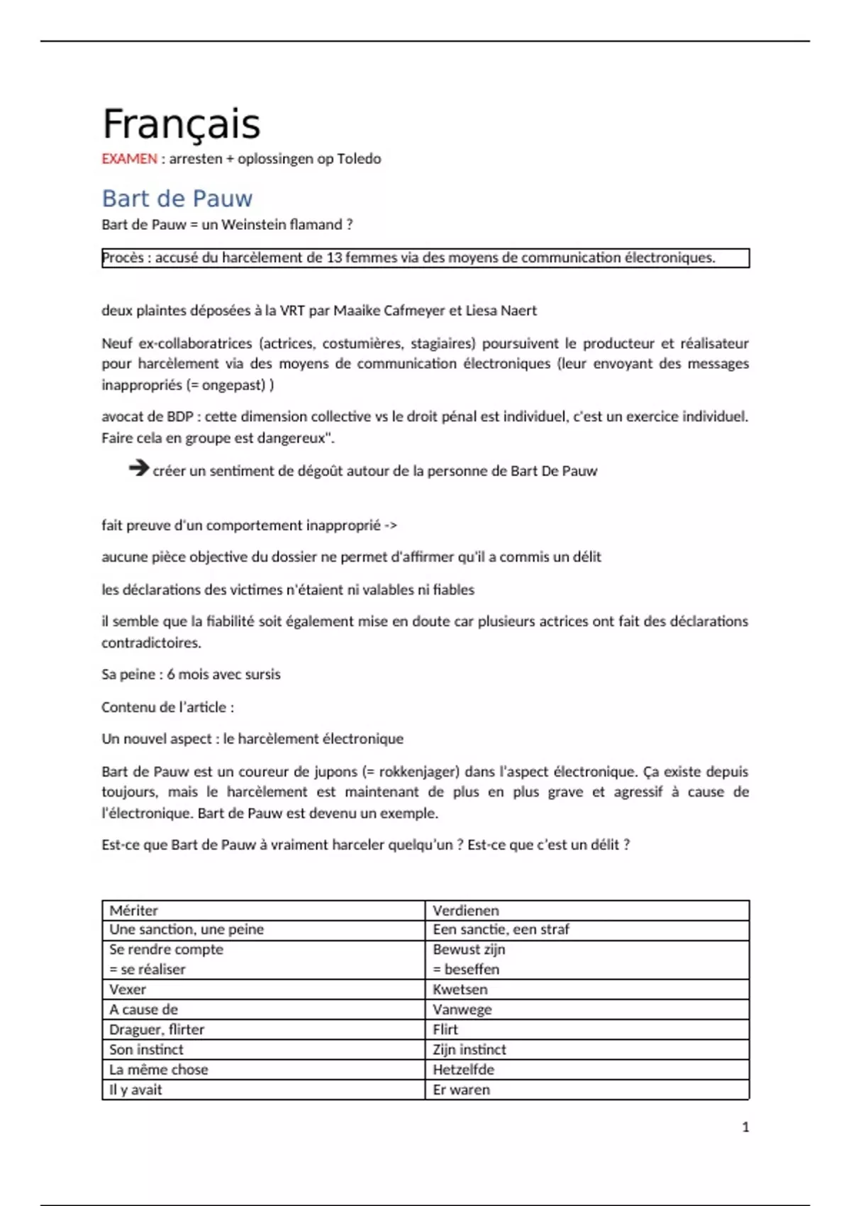 Had er zelf een 19/20 voor :) Is geschreven in het Frans en Nederlands.