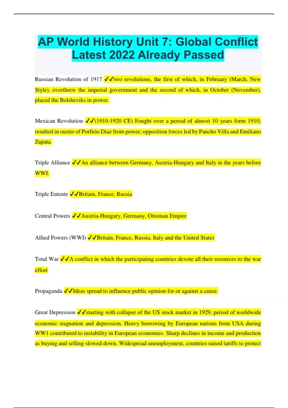 AP World History Unit 7: Global Conflict Latest 2022 Already Passed