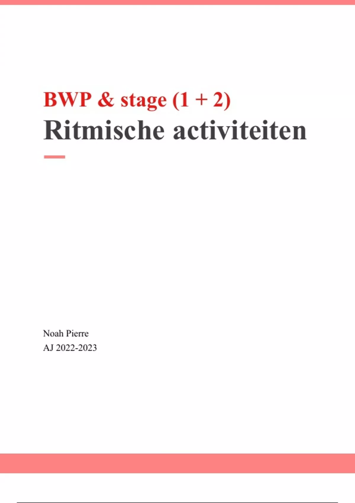 samenvatting van ritmische activiteiten van BWP 1 en BWP 2 (BWP = bewegingspromotie & -preventie miv stage)