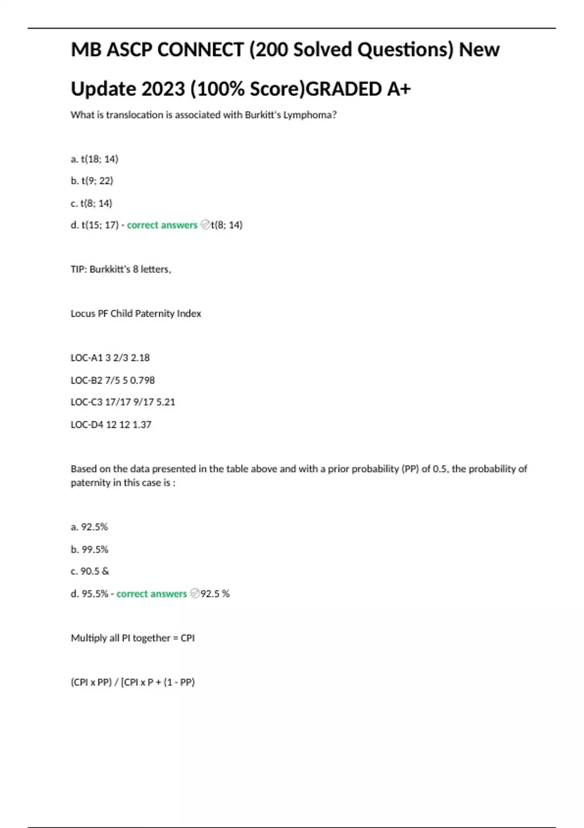 MB ASCP CONNECT (200 Solved Questions) New Update 2023 (100% Score)GRADED A+